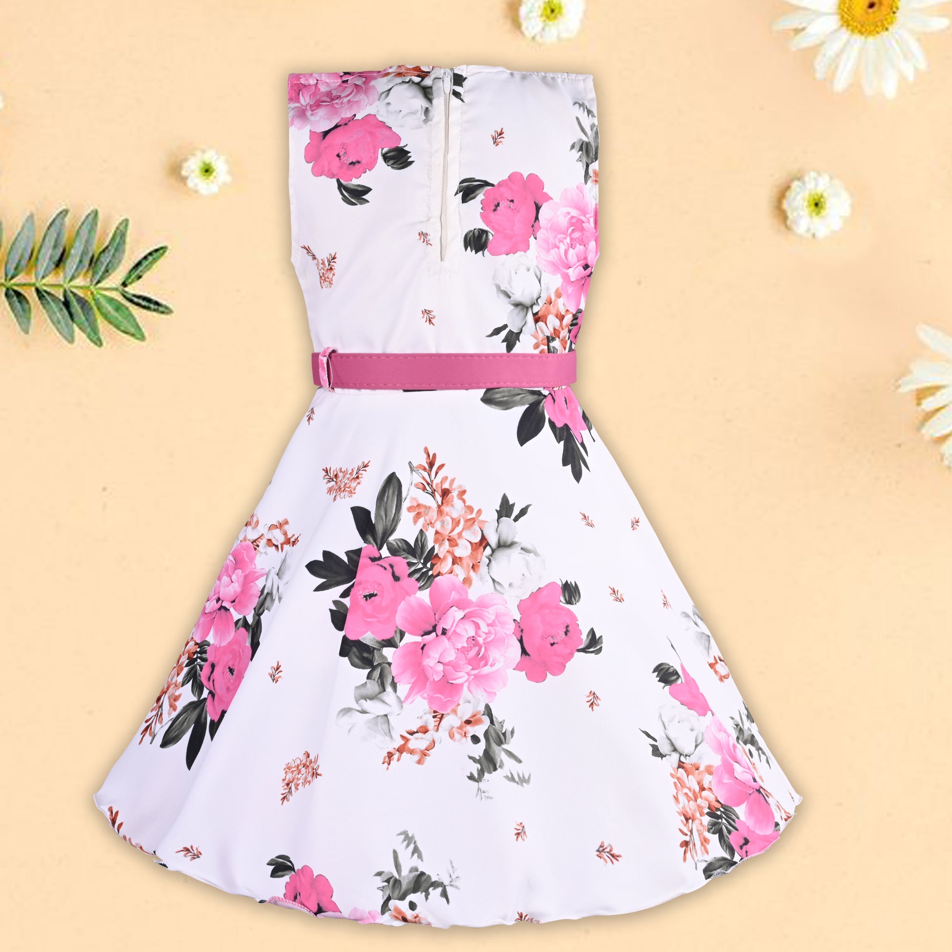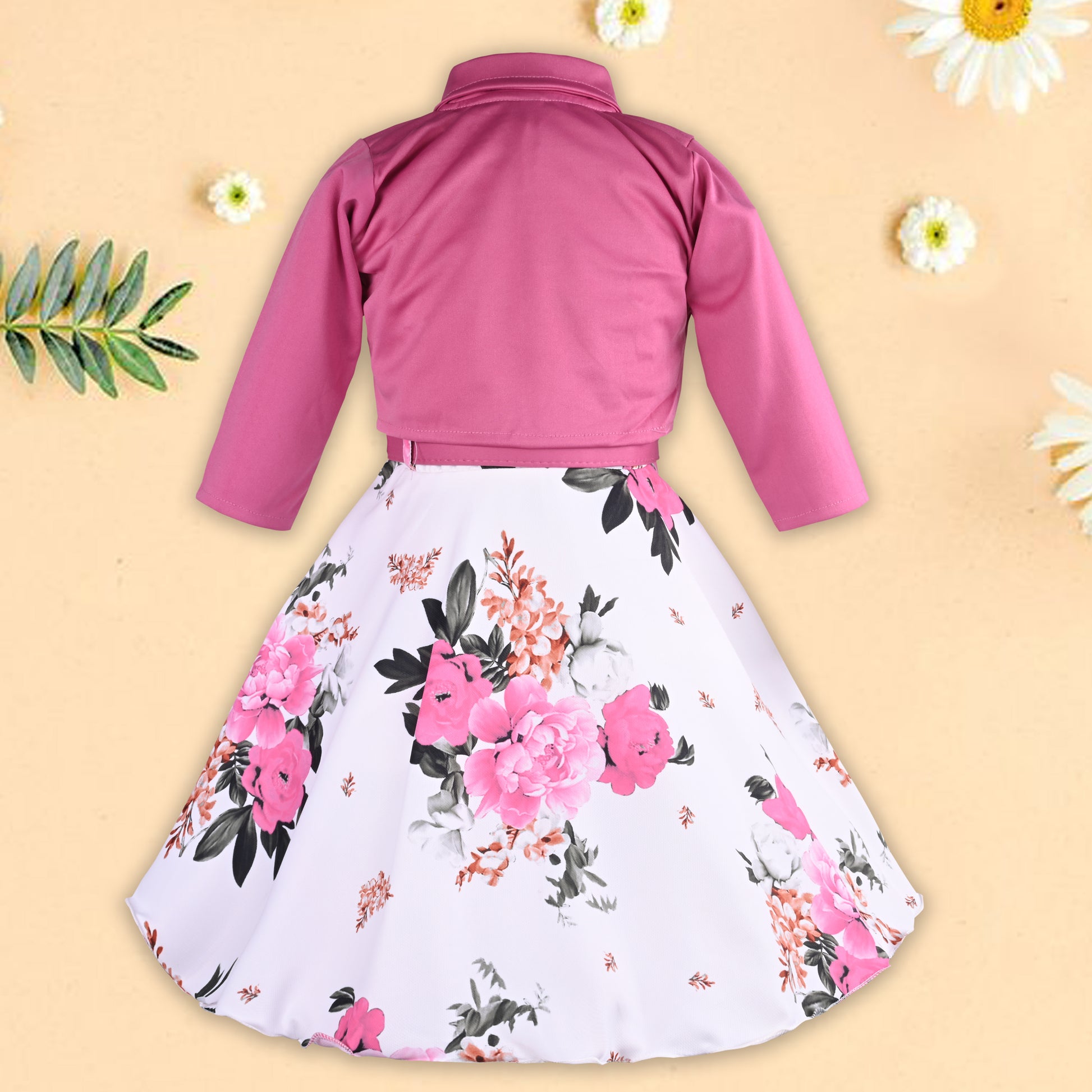 Dress your little girl in this adorable Floral Printed Dress with a matching jacket. The collar and sleeveless design ensure comfort for all-day wear. Perfect for any occasion, this dress is a must-have for your daughter's wardrobe.
