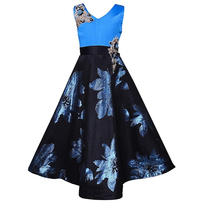 Girls Floral Printed Embellished Maxi Dress With Cape