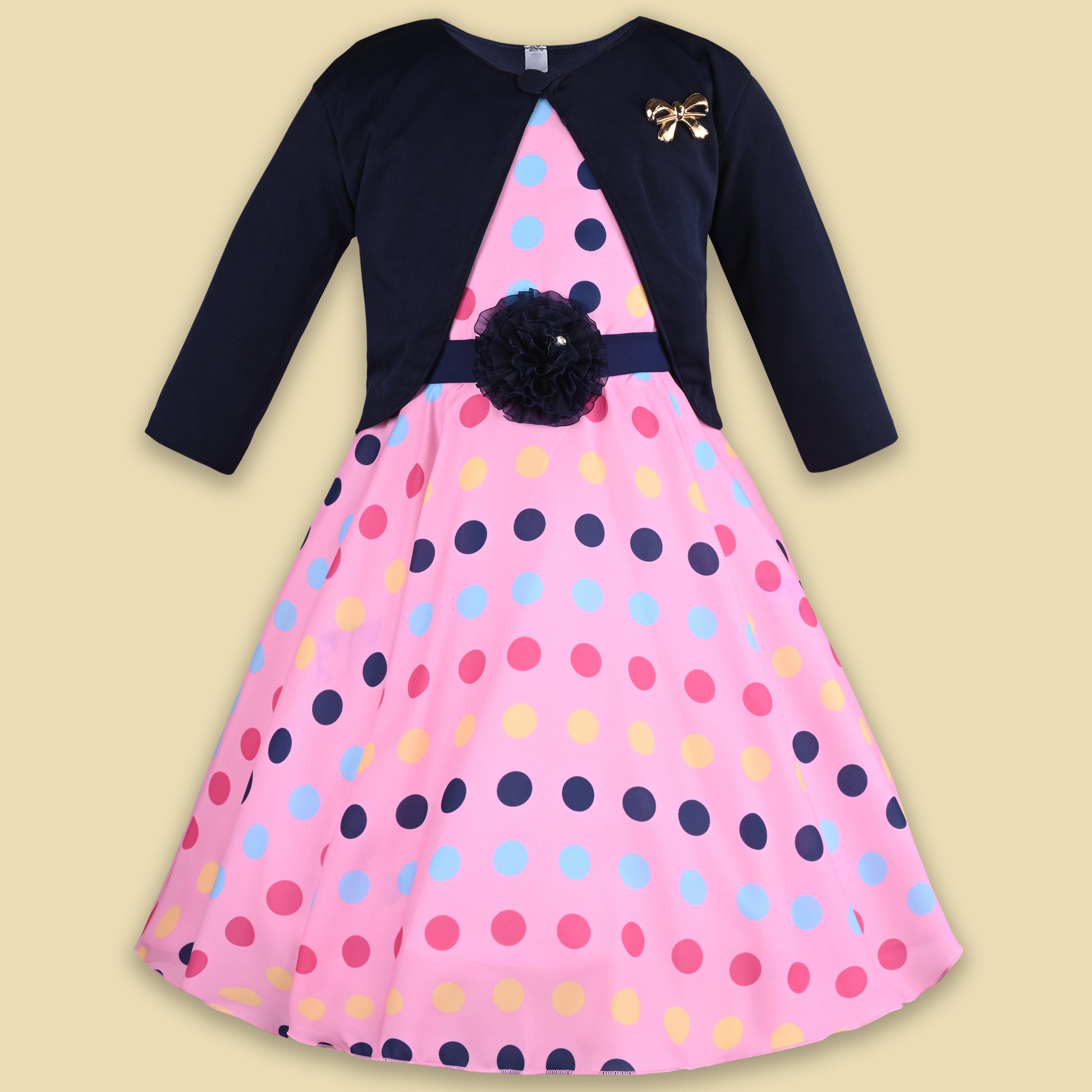 Girls Full Sleeve Polka Print A-Line Frock Dress
