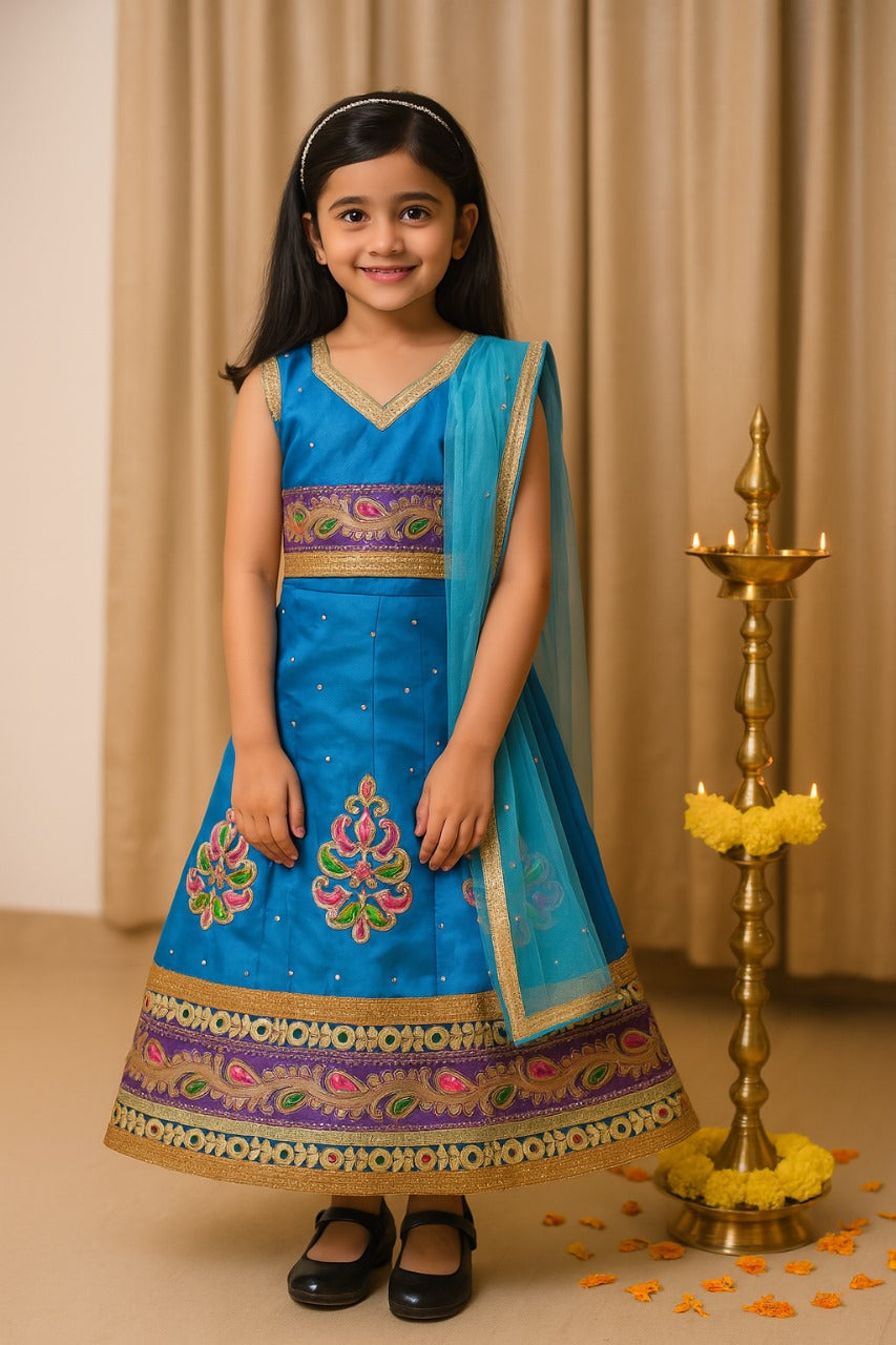 - Top Choli and Ghagra are made from Net and Satin, Dupatta: Net and Satin and Inner: Raw Silk