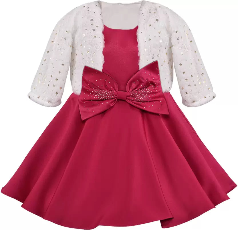 This girls midi/knee length party dress is the perfect addition to any special occasion. Made with high-quality materials, it is both comfortable and stylish. Its midi/knee length design provides a sophisticated look while the vibrant colors add a fun touch. Your little girl will love wearing this dress.