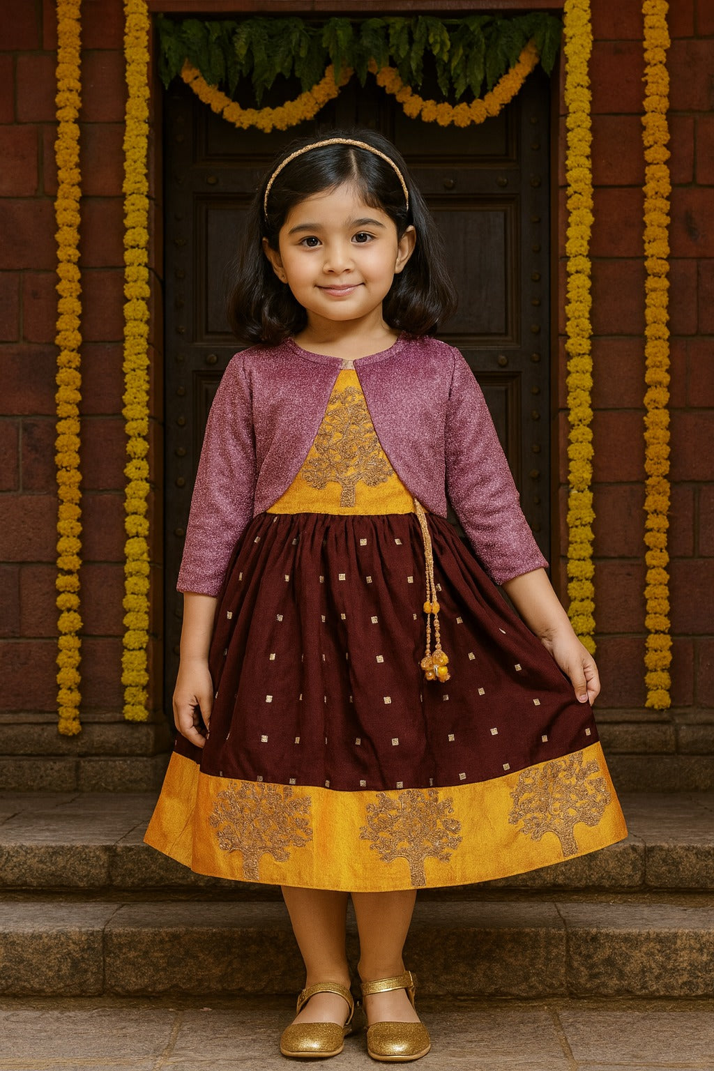 Baby Girls Silk Embroidered Ethnic Frock Dress With Jacket
