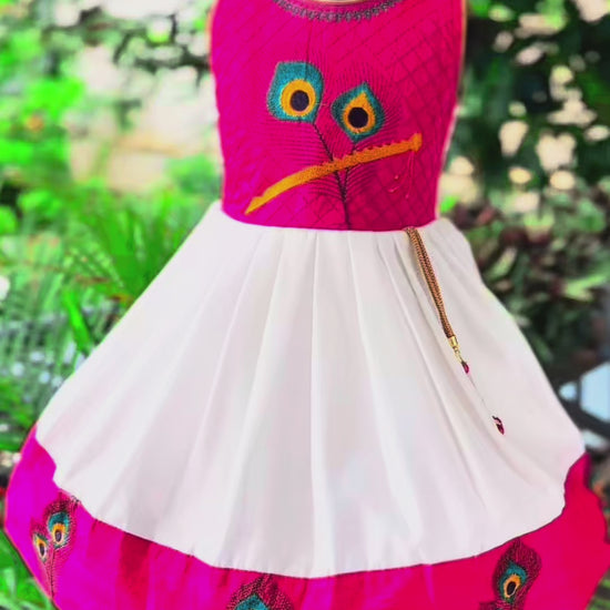 Baby Girls Peacock Embroidered Pleated Frock Dress for Onam