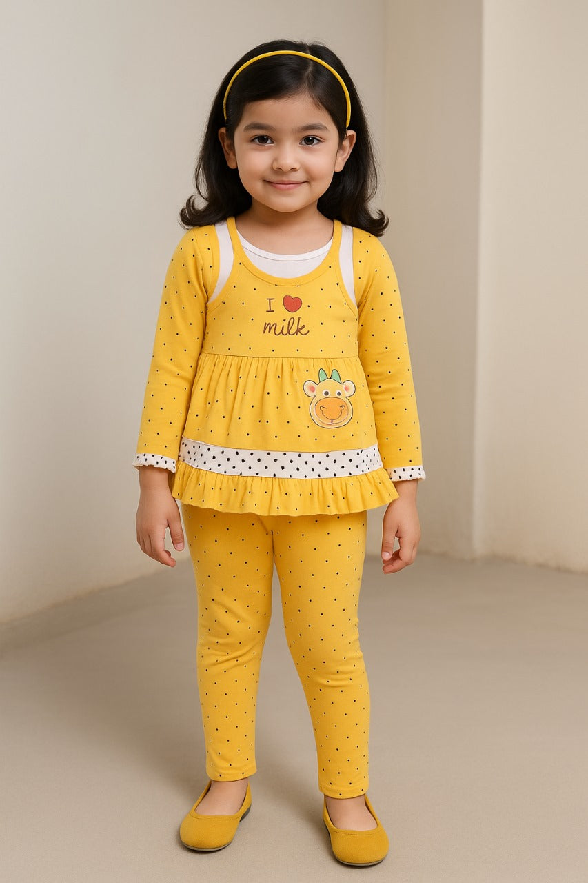 Girls Summer Polka Dot & Applique Top and Pant Set