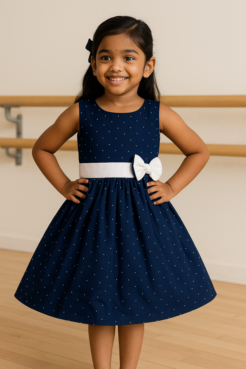 Girls Summer Cotton Polka Print Fit and Flare Frock Dress