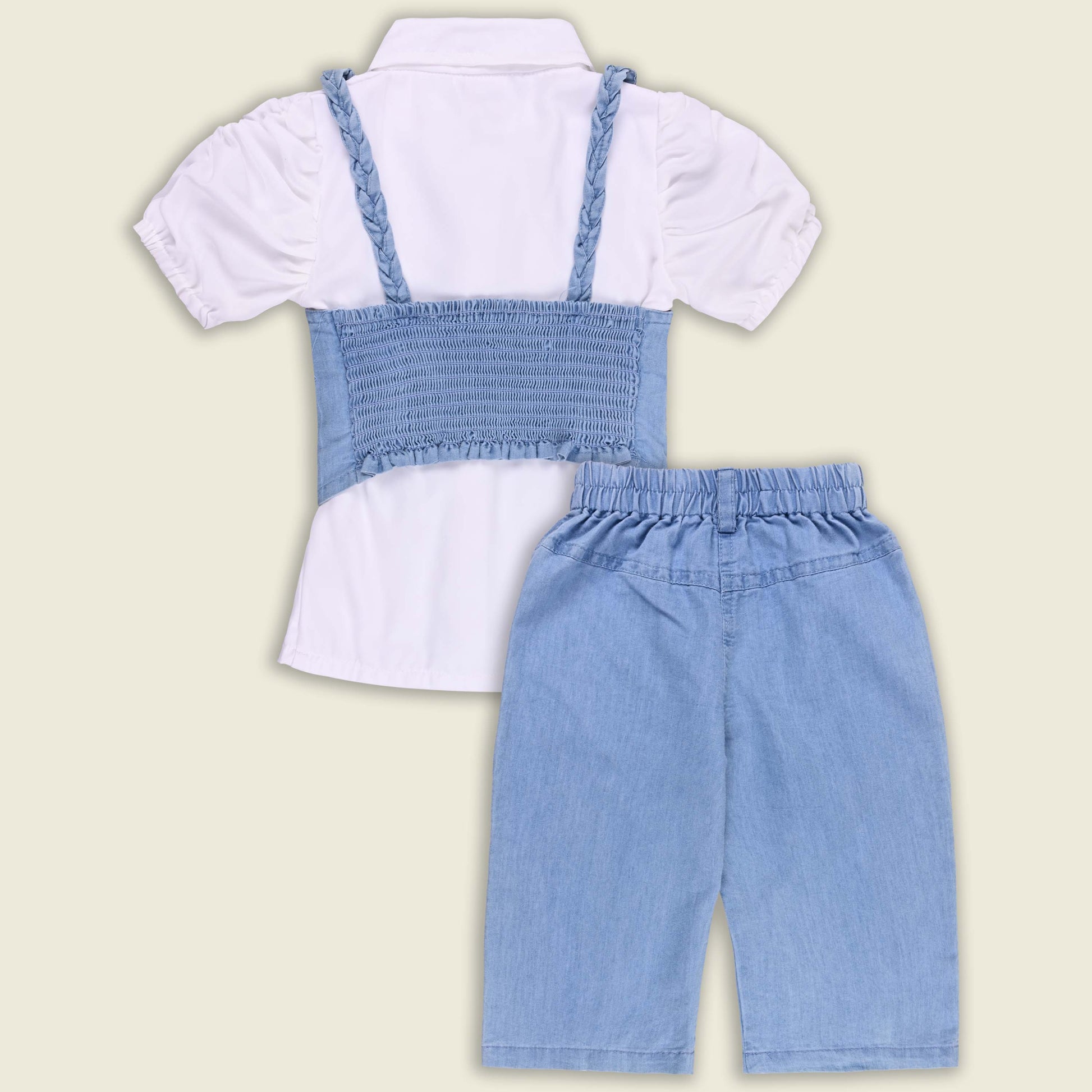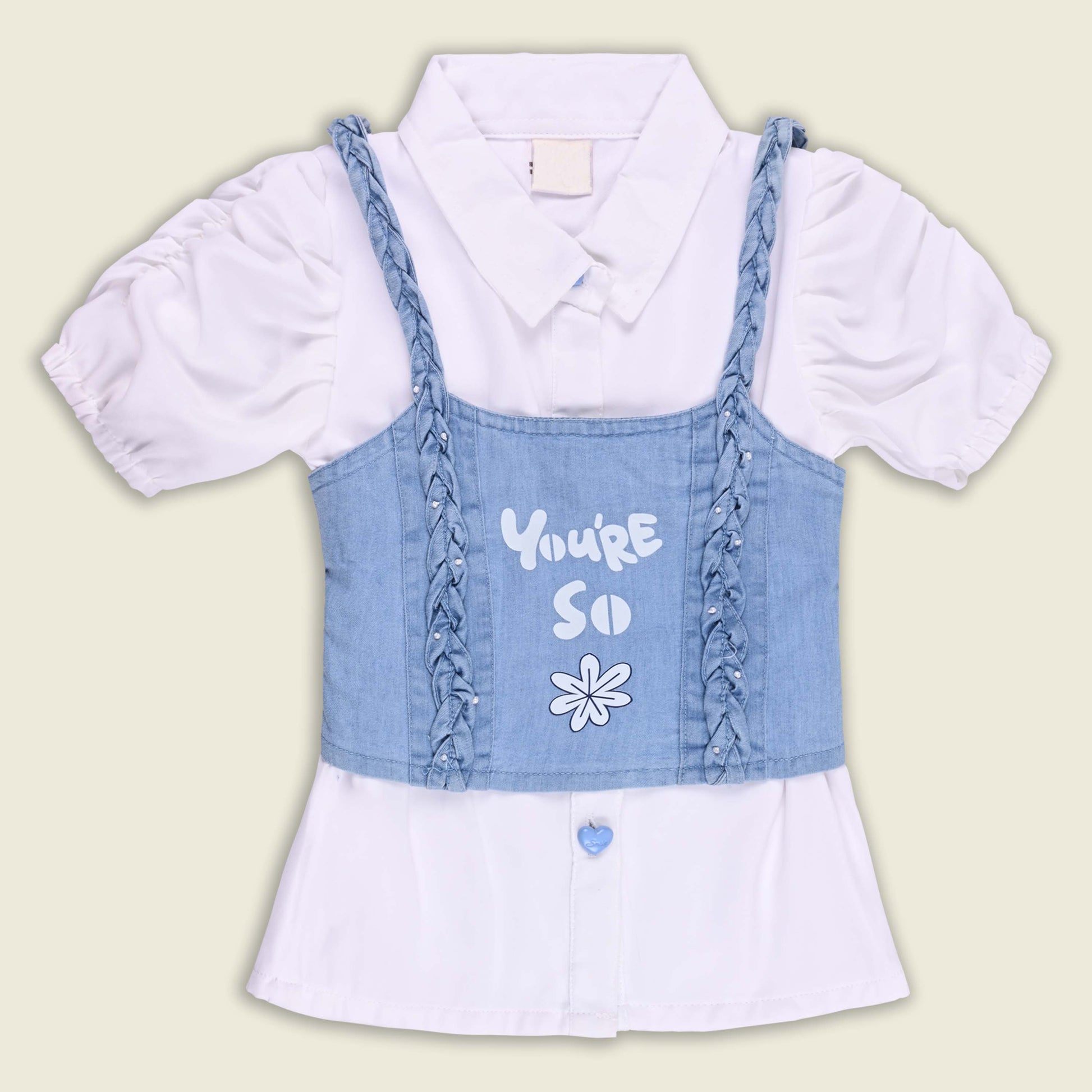 Upgrade your girlβs wardrobe with this stylish 3-piece set featuring a printed denim crop top, matching jeans, and a lightweight shirt. The denim crop top adds a fashionable edge, while the jeans ensure durability and comfort. The versatile shirt can be worn open, buttoned up, or layered to create different looks. Perfect for parties, day trips, vacations, or casual outings, this set pairs effortlessly with sneakers or flats for a chic, put-together style.