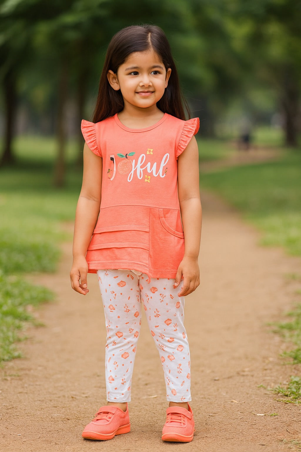 This clothing set is perfect for your little one. The baby pink top features a lovely floral print, round neck, and cap sleeves, while the black floral print pants have a drawstring closure for comfort and convenience. Dress your child in this adorable set for a cute and stylish look.