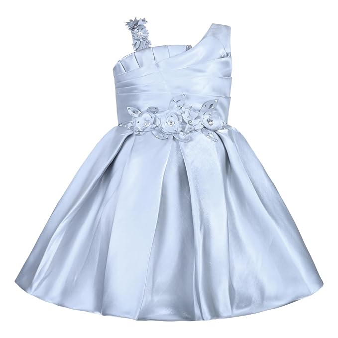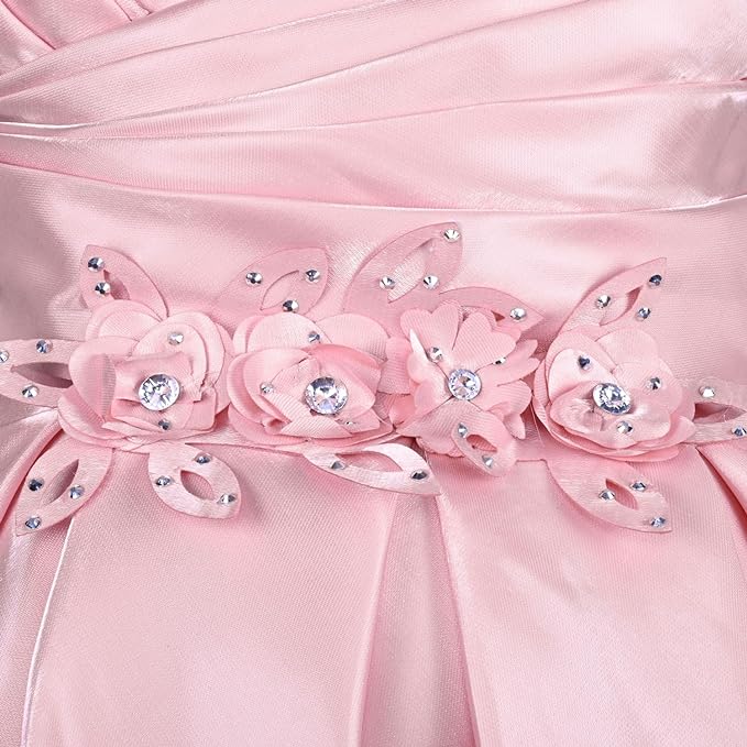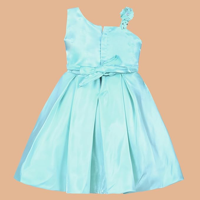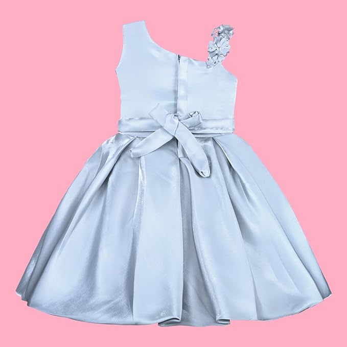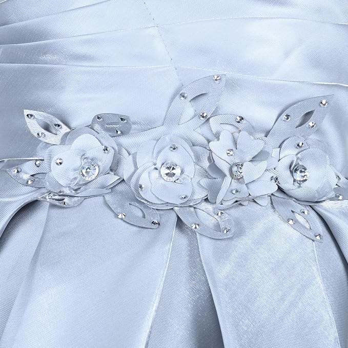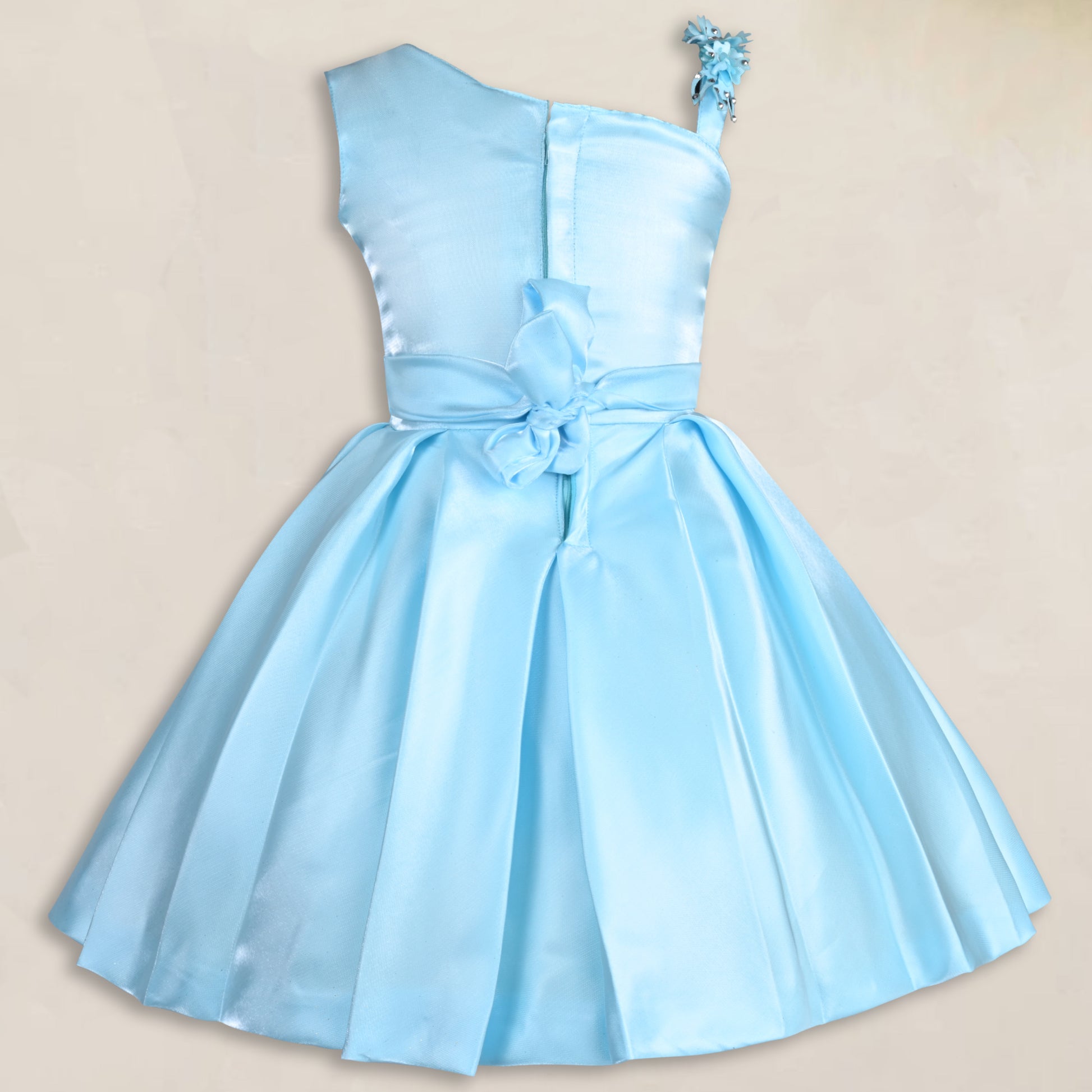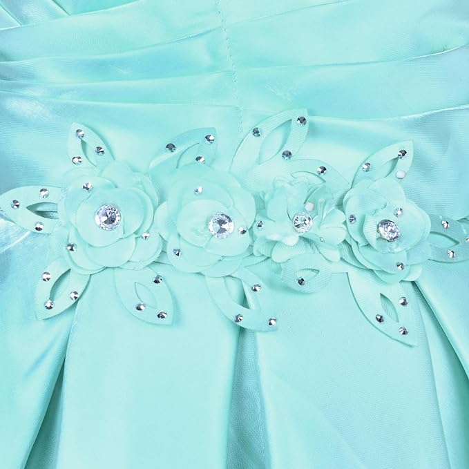 Girls Satin Embellished Flower Detailed Fit and Flare Dress
