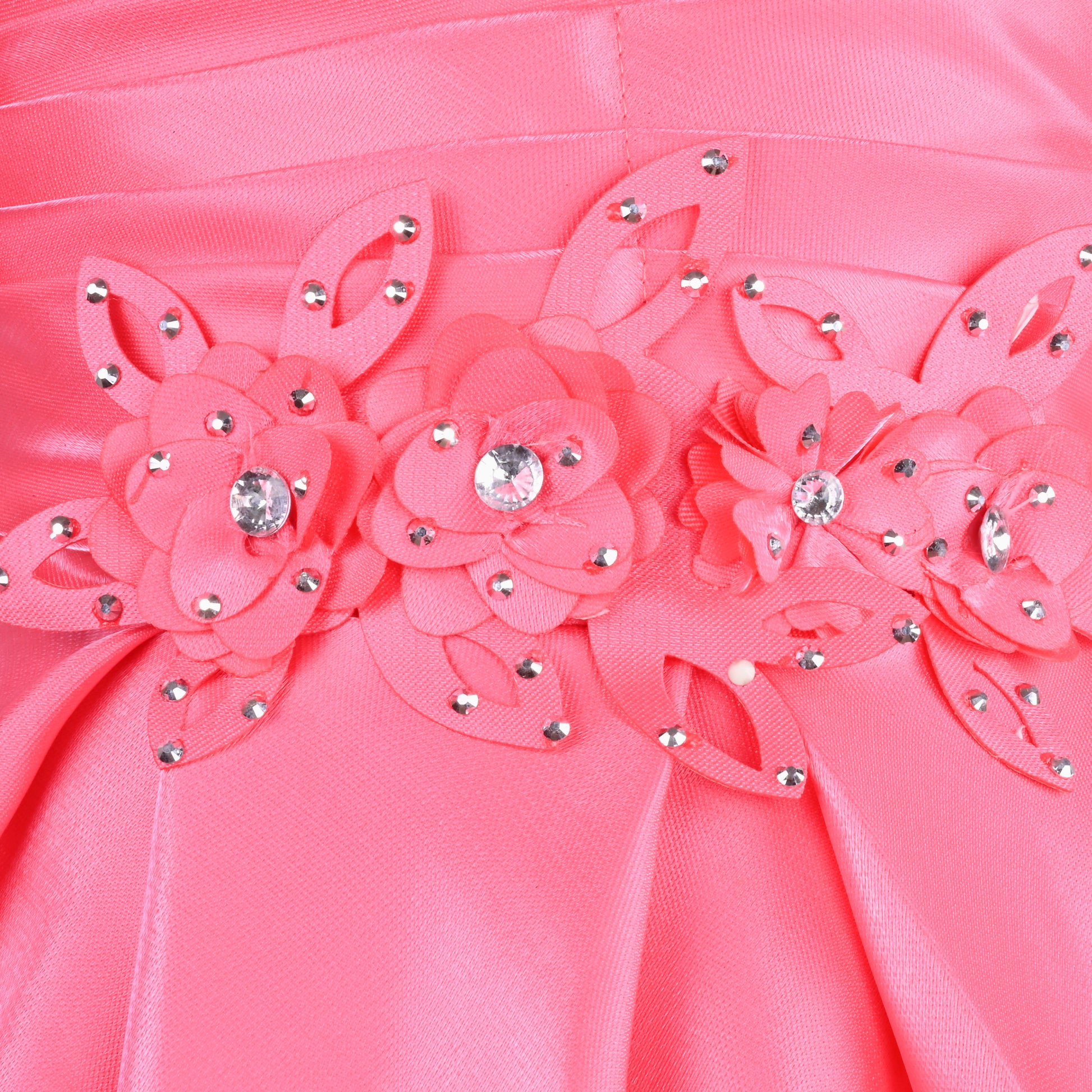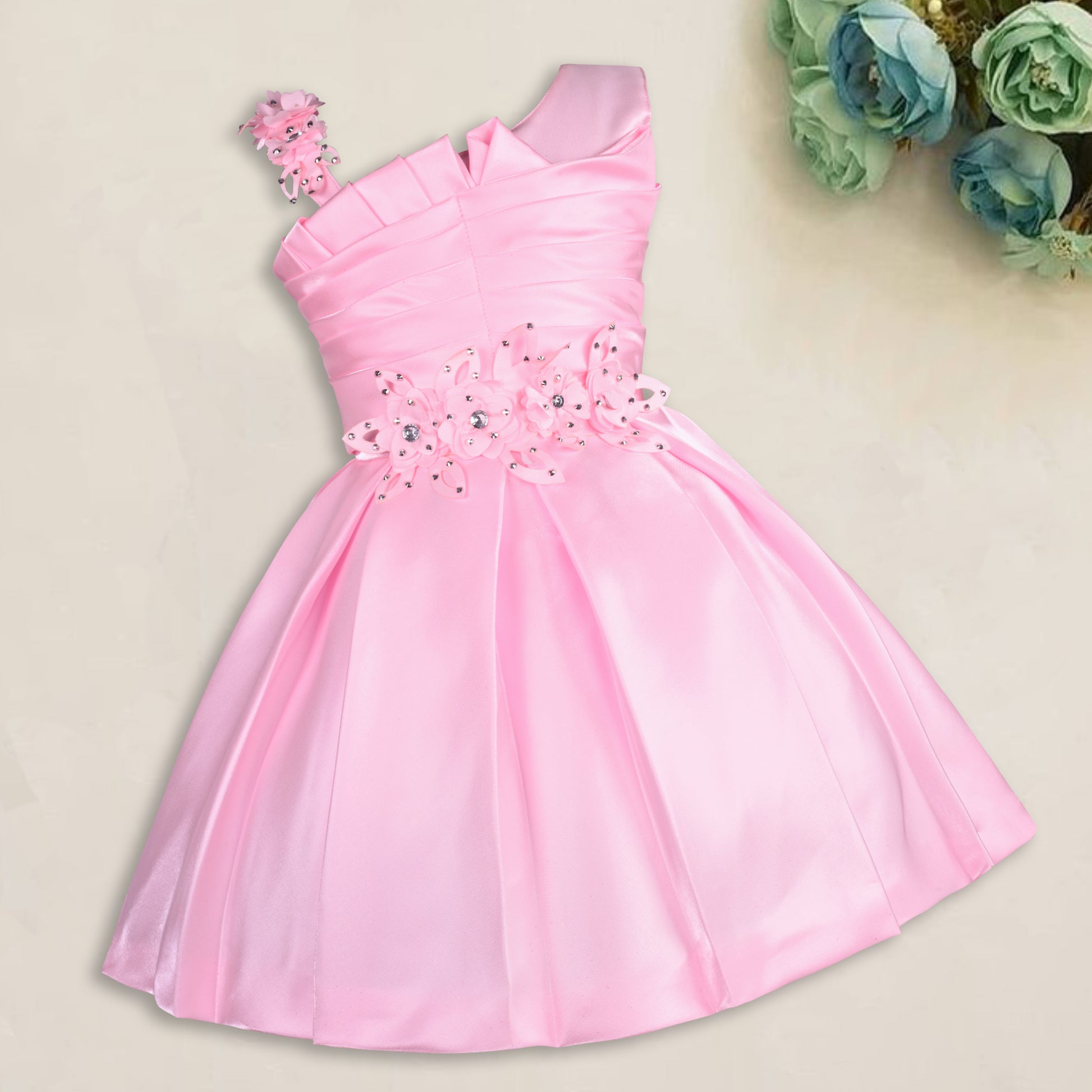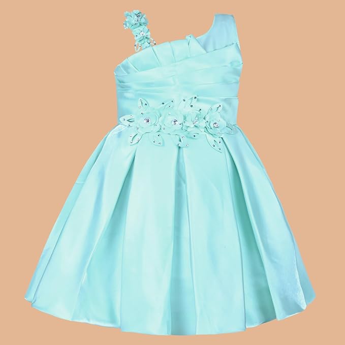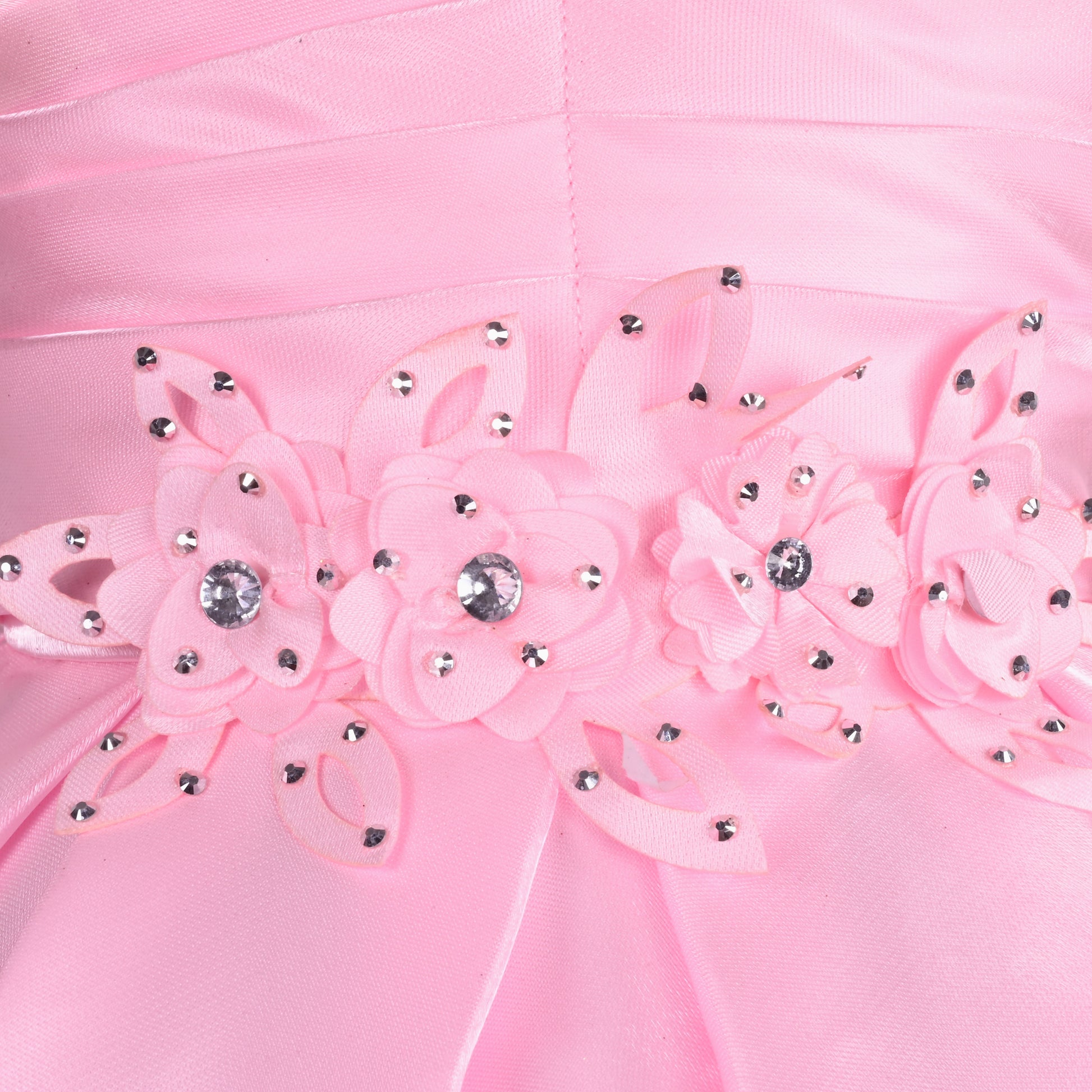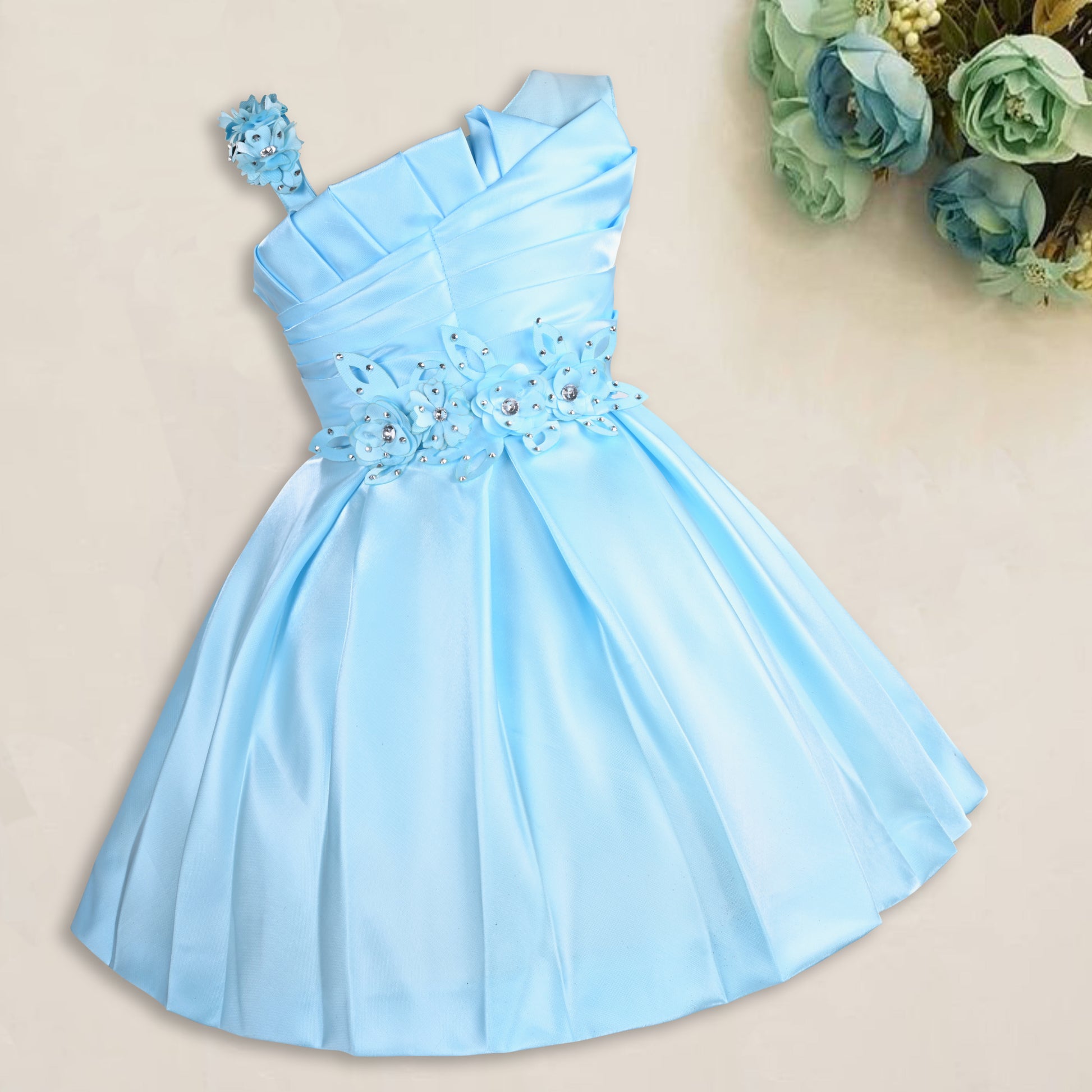 Girls Satin Embellished Flower Detailed Fit and Flare Dress