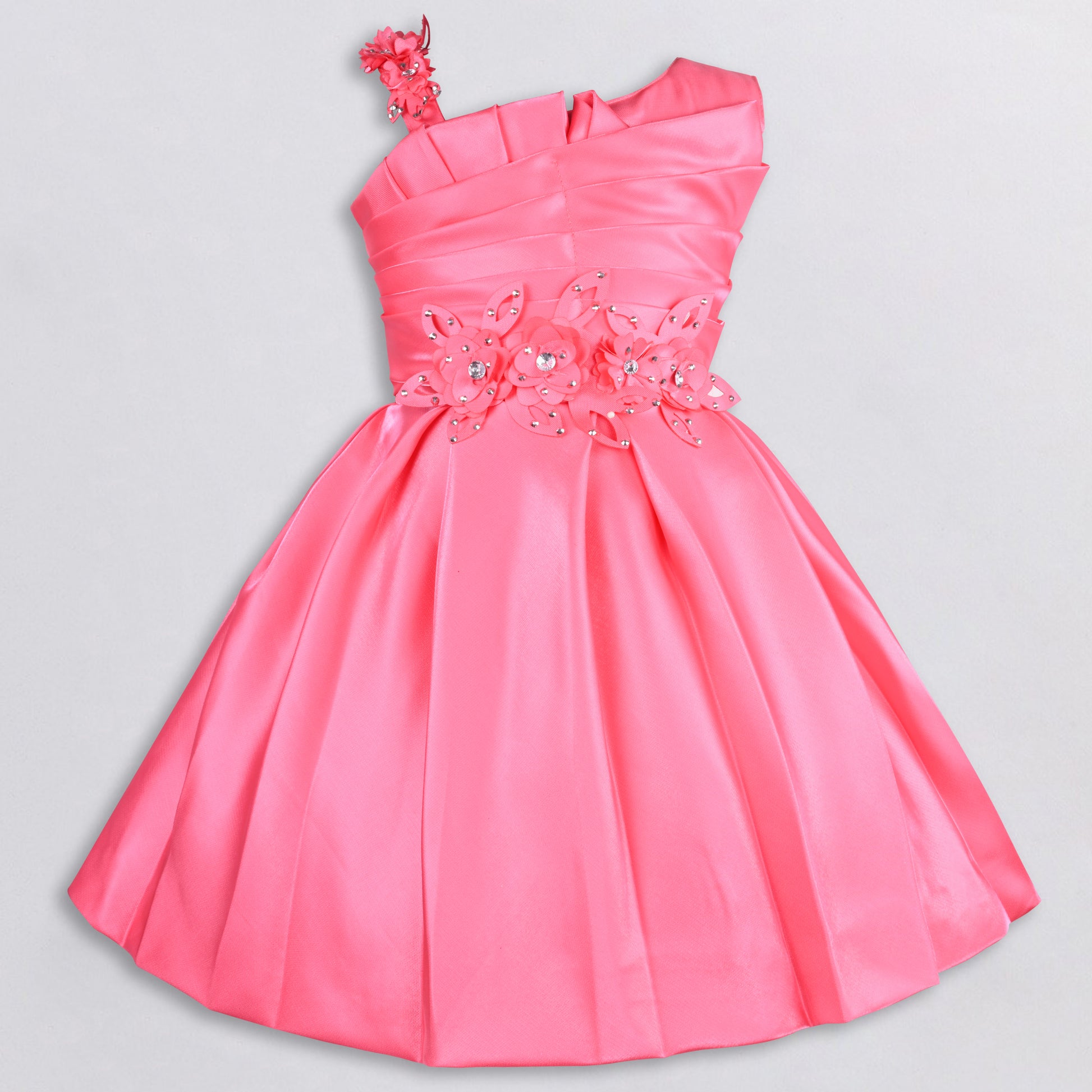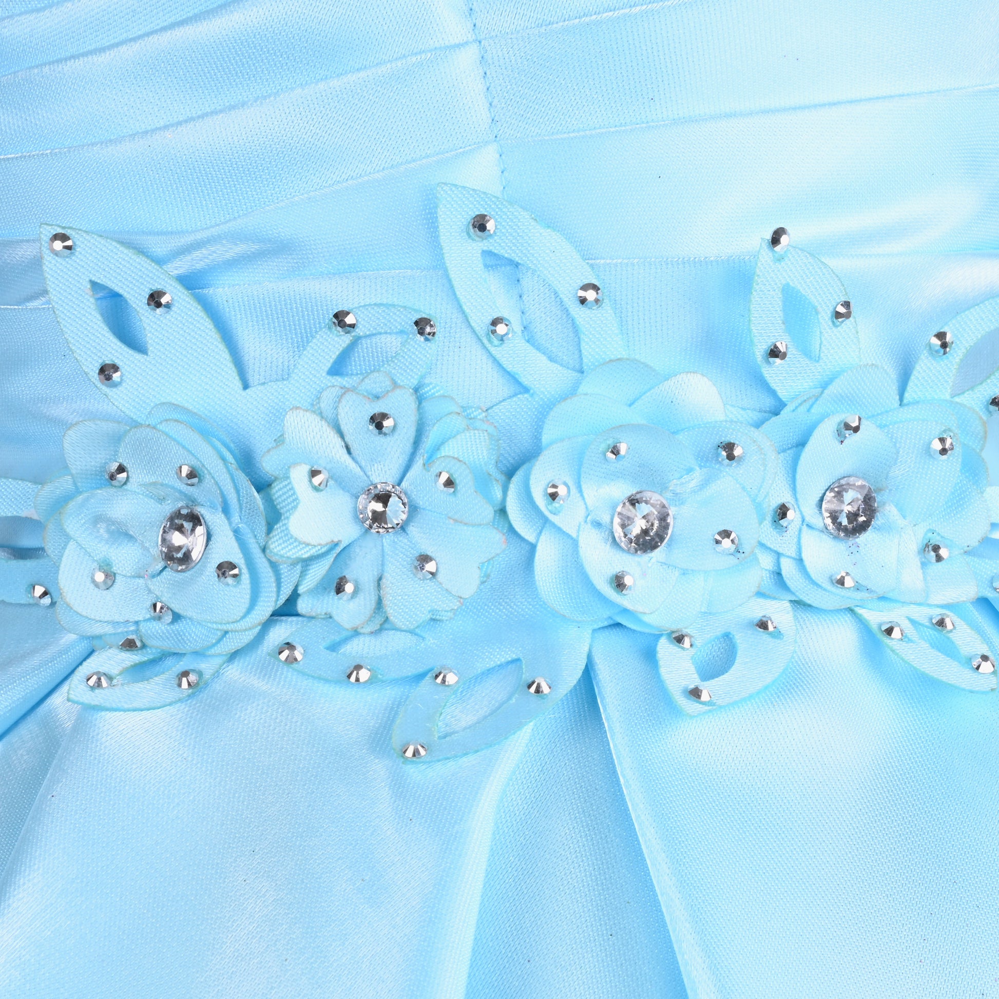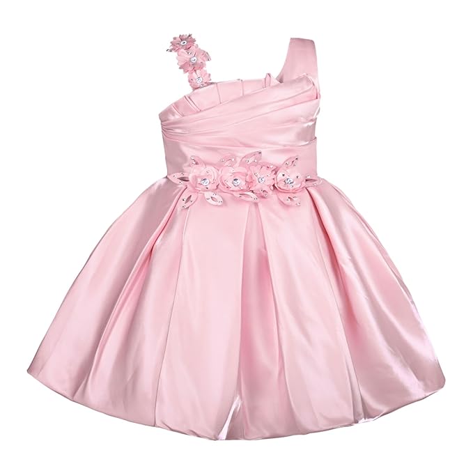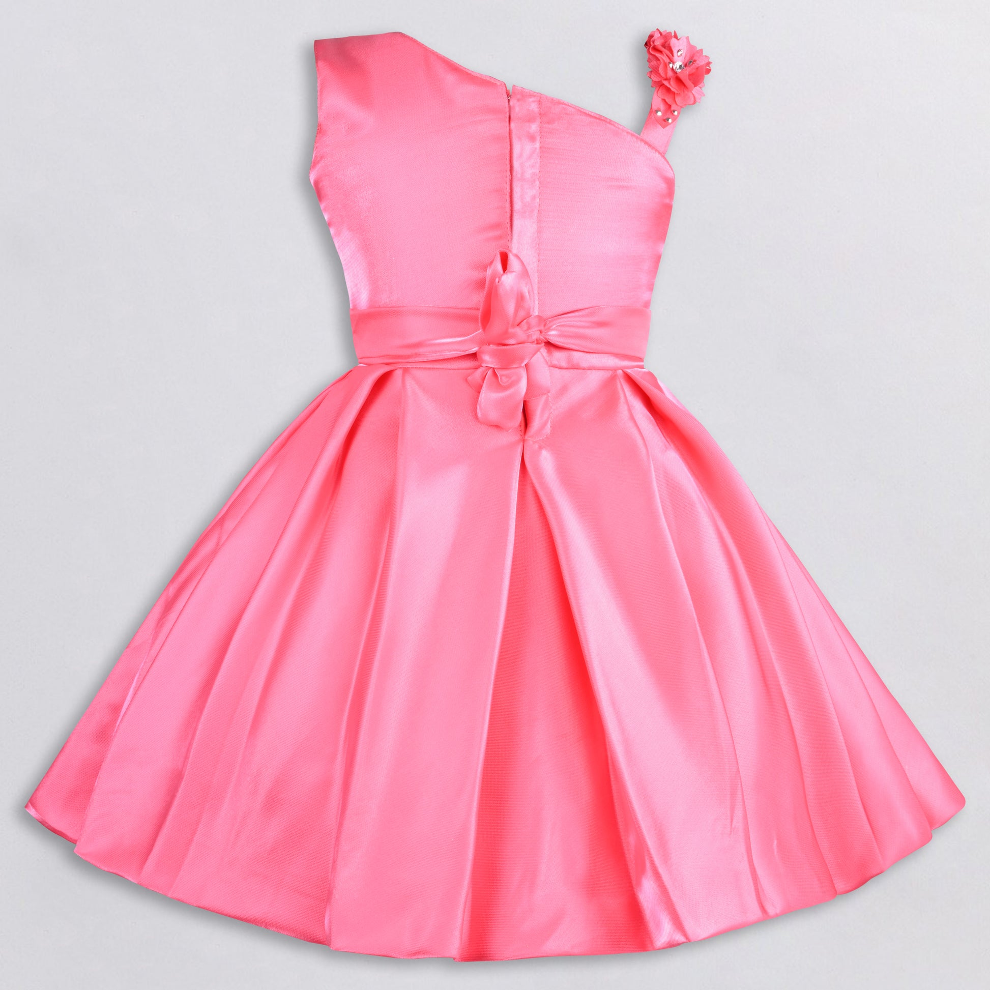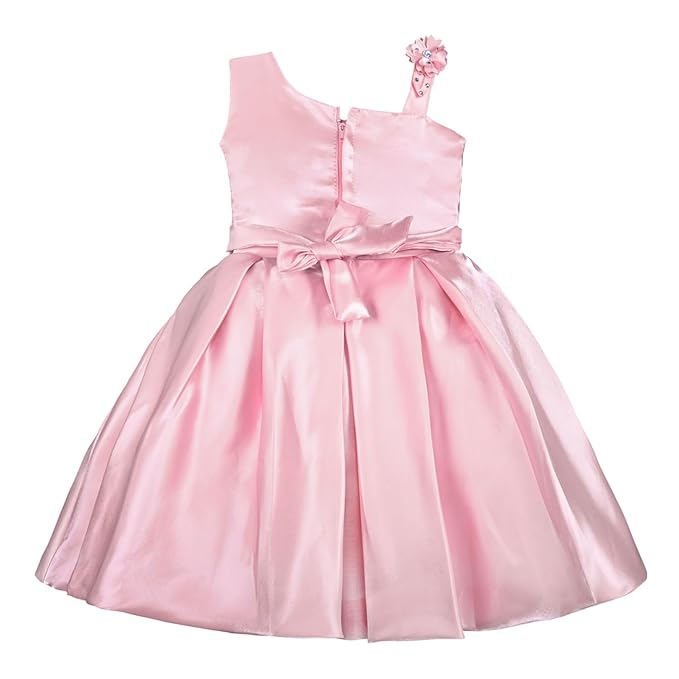 Girls Satin Embellished Flower Detailed Fit and Flare Dress