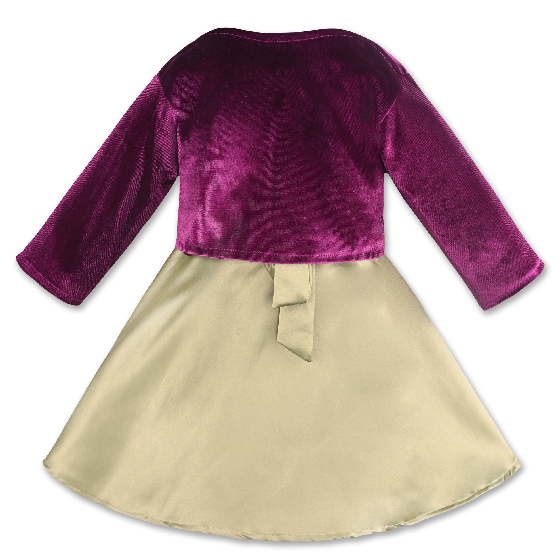 Girls Satin Party Wear Dress with Velvet Shrug & Bow Design
