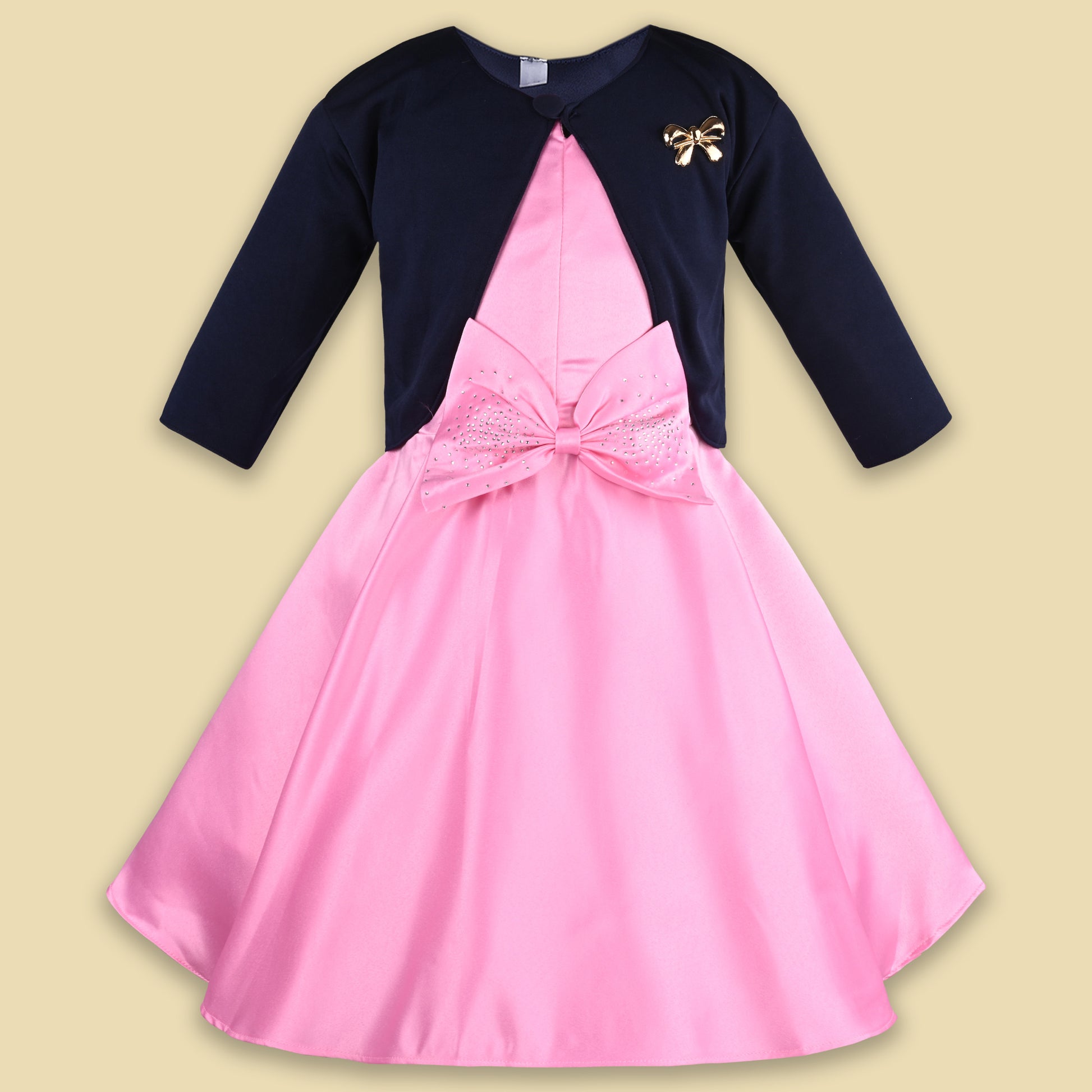 Girls Solid Asymmetric Sleeve Fit and Flare Frock Dress