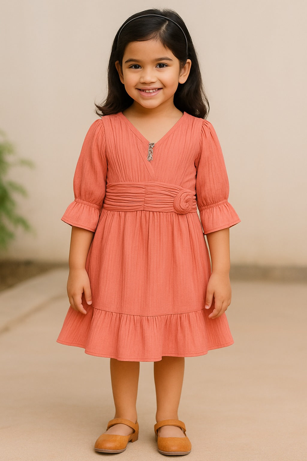 Let her step out in confidence and comfort with this Girls Tiered Hem PolyLycra Casual Dress. Made from soft and stretchable PolyLycra, it offers a stylish fit with ease of movement. The tiered hem adds a playful flair, making it perfect for casual day-outs, birthdays, or weekend adventures. A modern must-have in every girl's wardrobe!