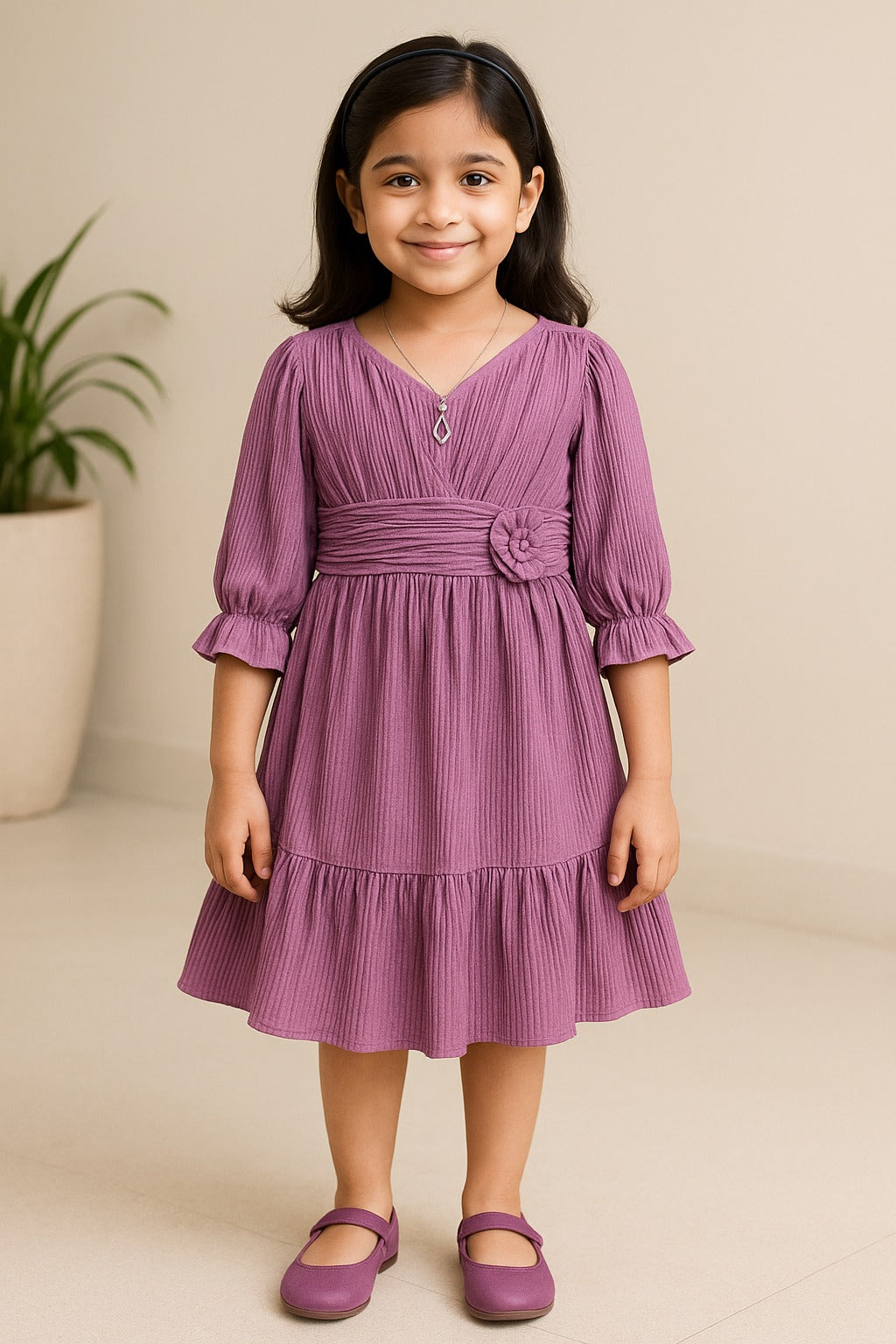 Let her step out in confidence and comfort with this Girls Tiered Hem PolyLycra Casual Dress. Made from soft and stretchable PolyLycra, it offers a stylish fit with ease of movement. The tiered hem adds a playful flair, making it perfect for casual day-outs, birthdays, or weekend adventures. A modern must-have in every girl's wardrobe!
