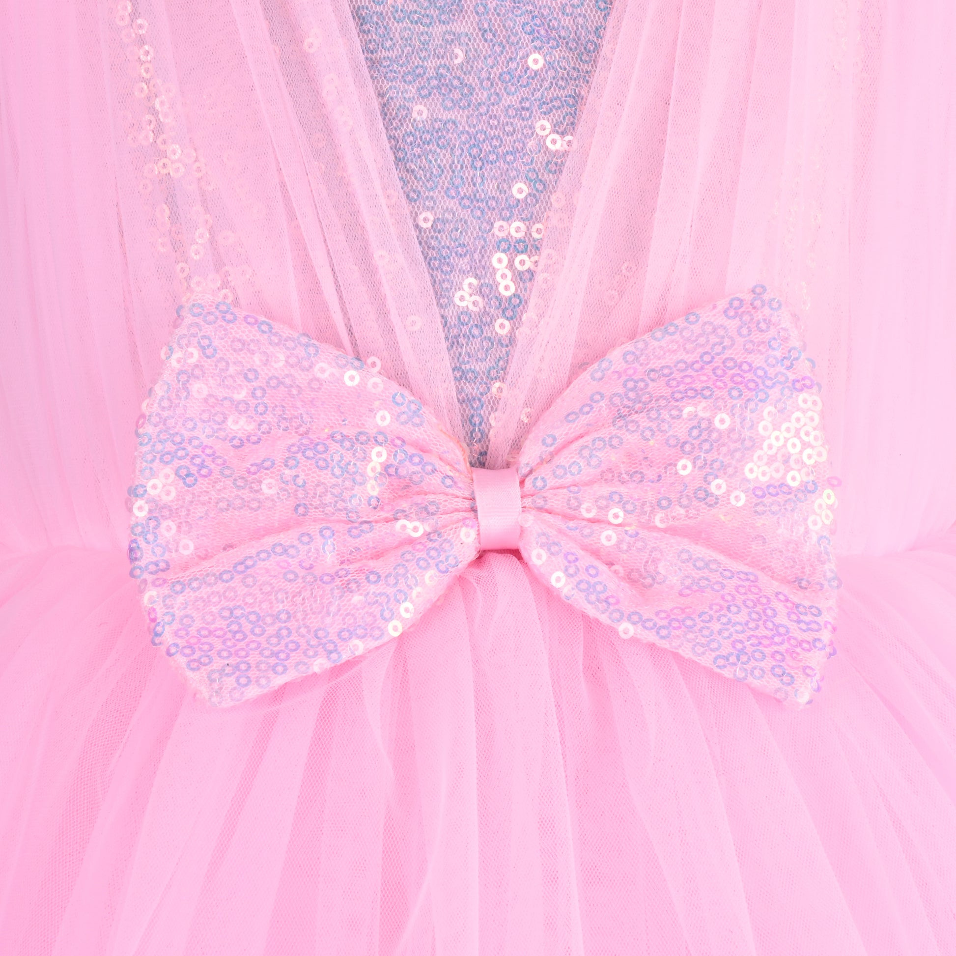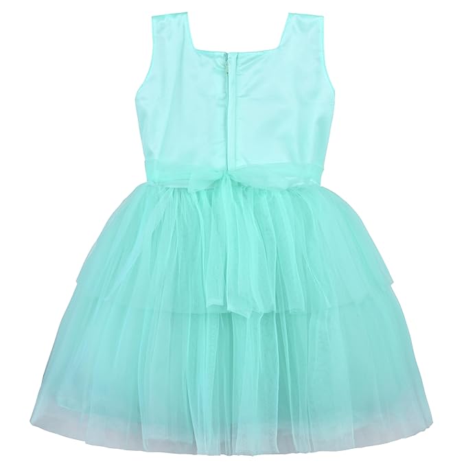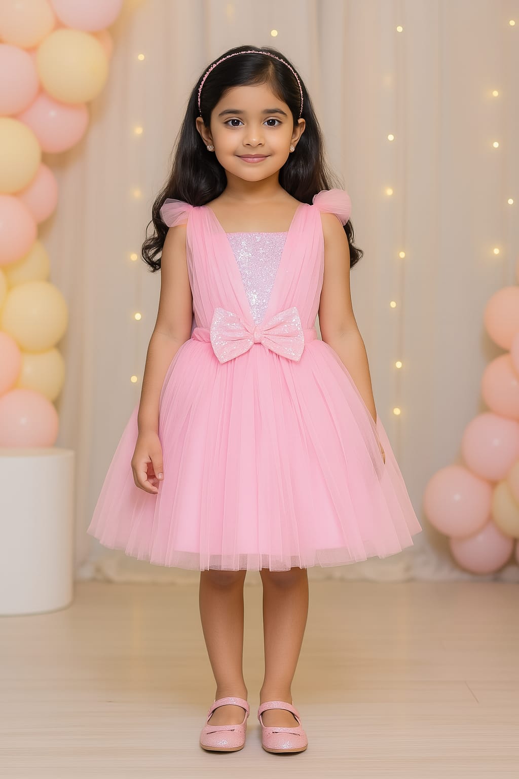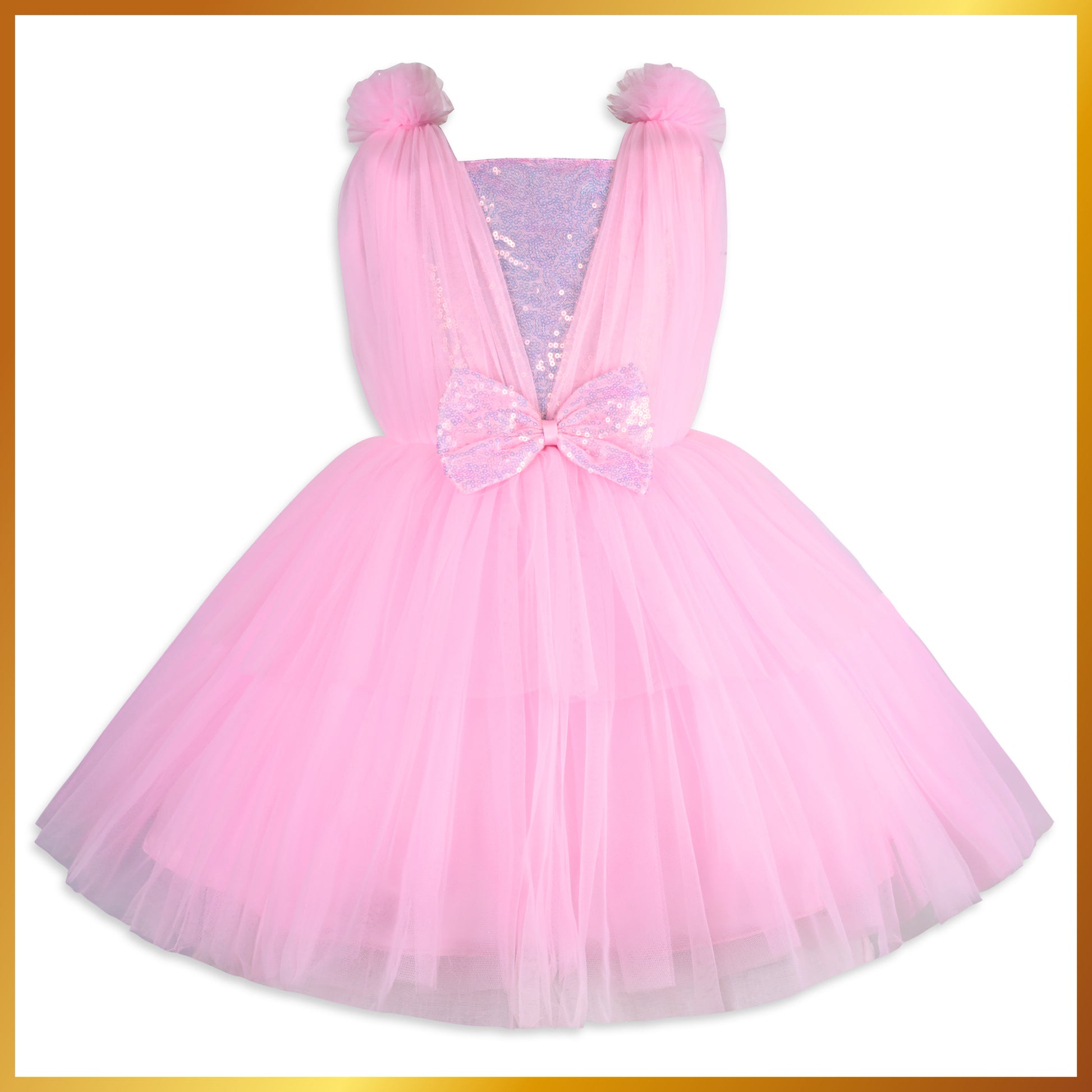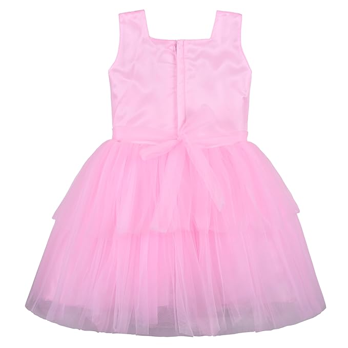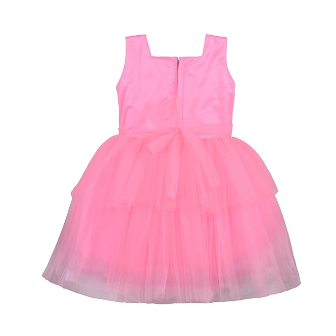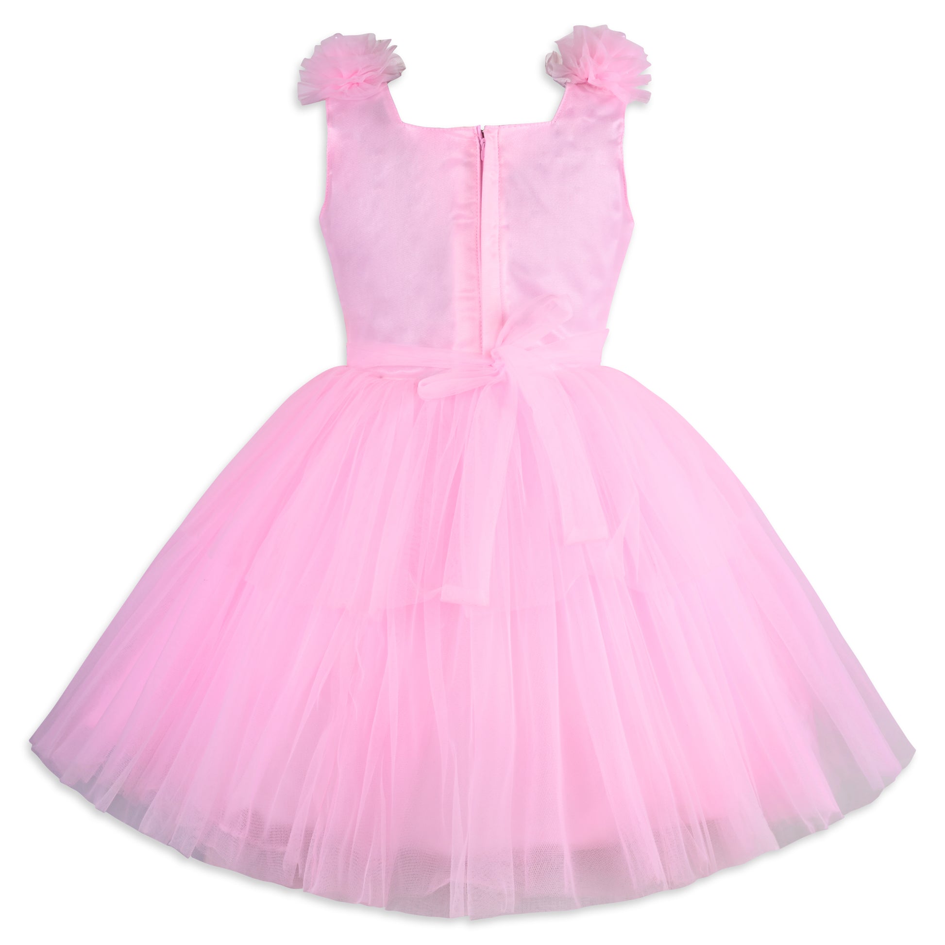 - Elevate her style with this knee length pink net dress. Accented with embellishments, this dress is perfect for birthday parties and special occasions. Made from premium quality fabric, it offers comfort and style in one piece. A must-have for every little fashionista!