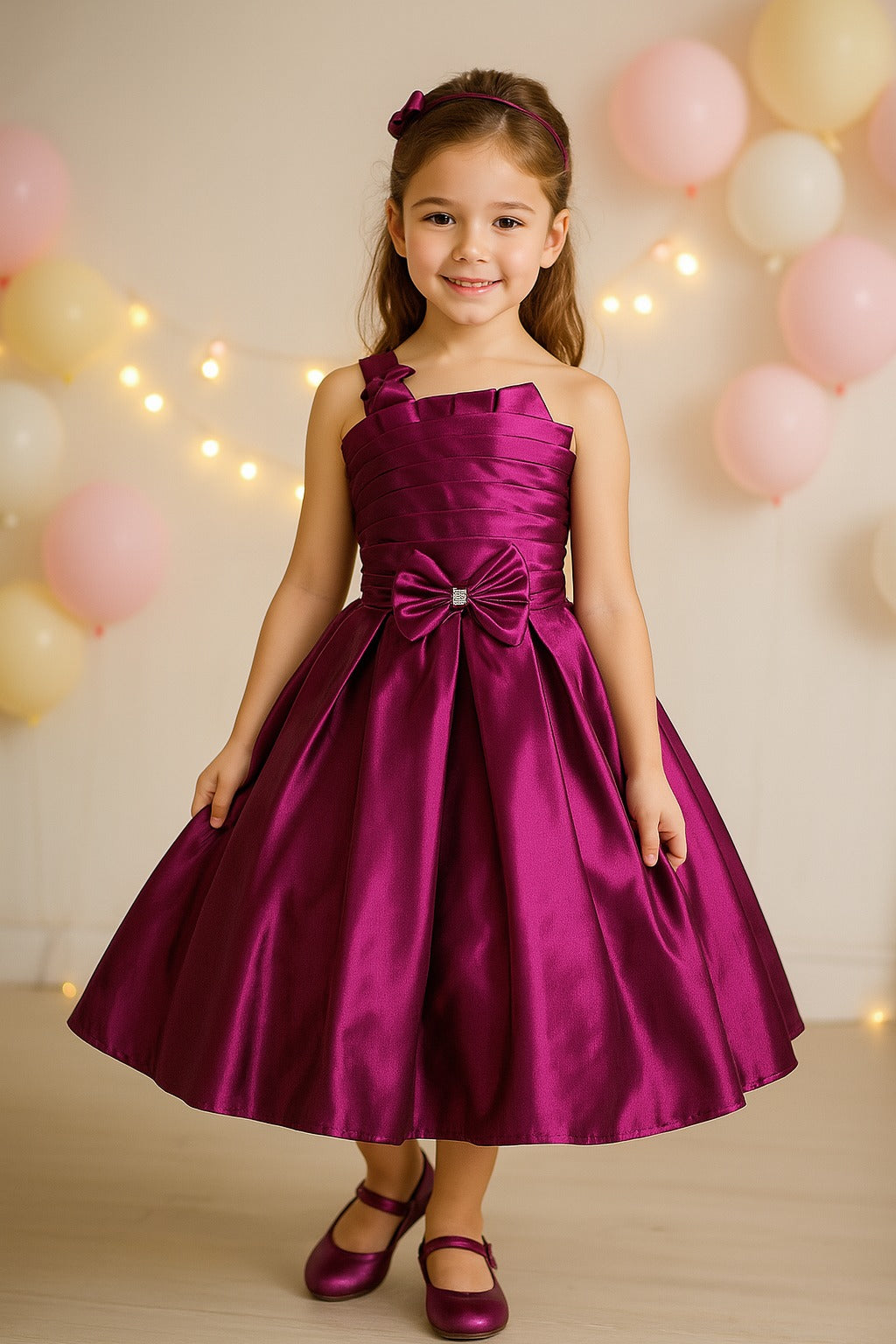 Girls Solid One Shoulder Strap Fit and Flare Frock Dress