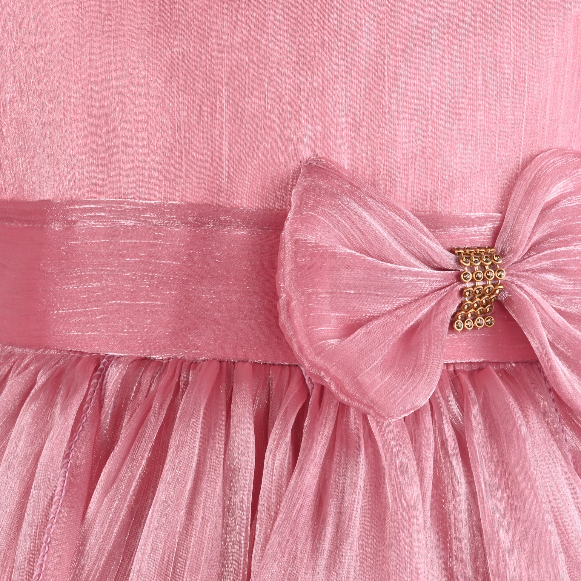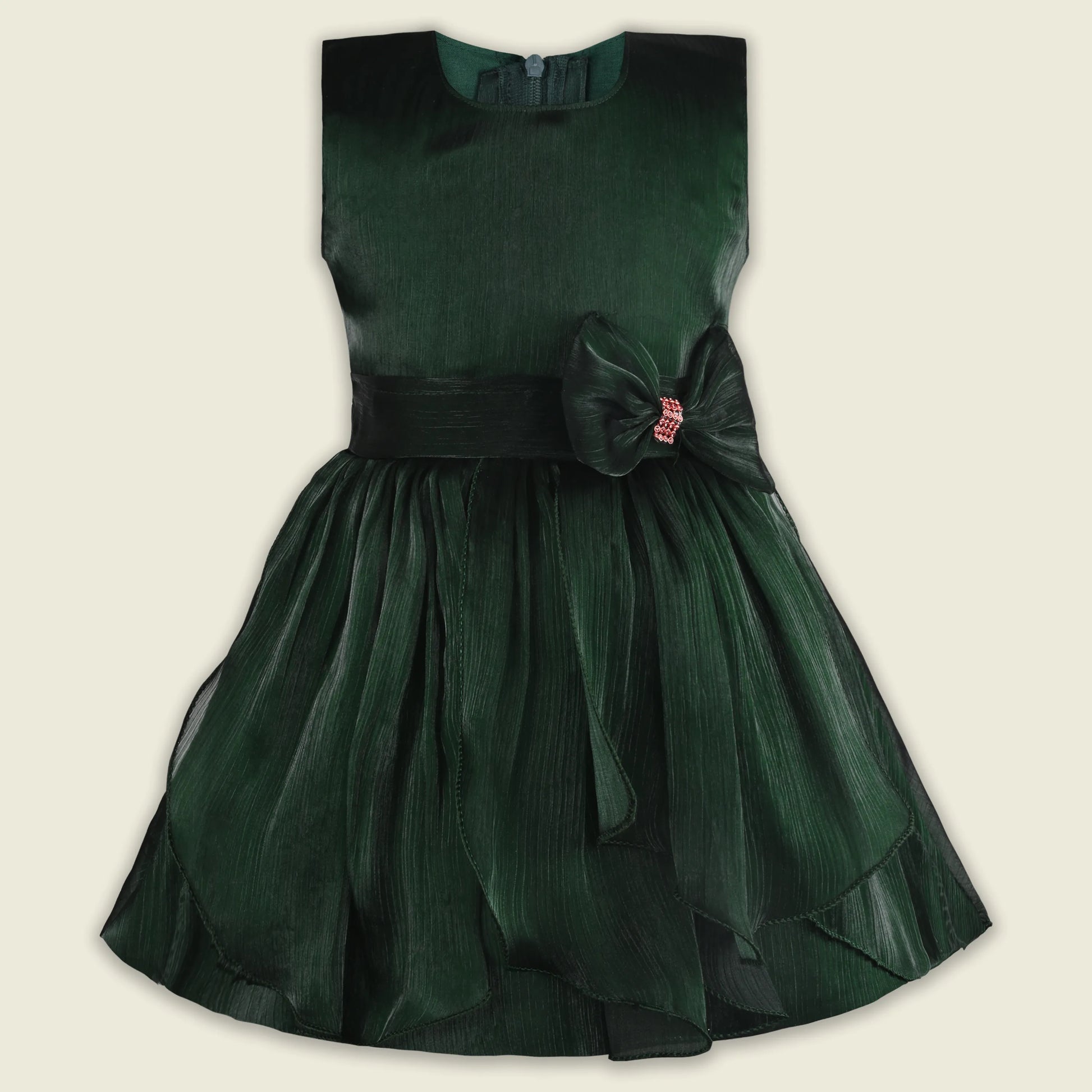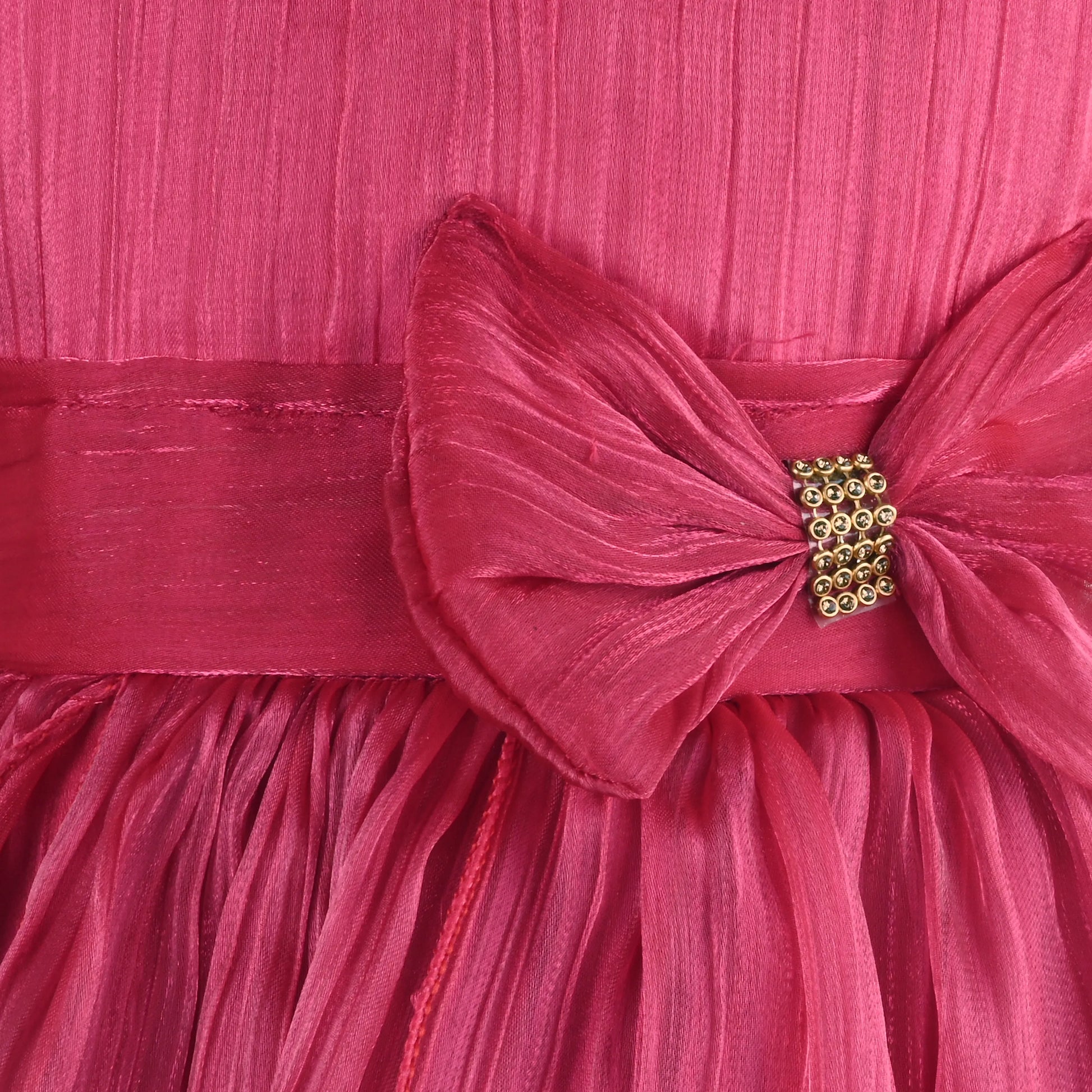 Girls Solid Pleated Satin Fit and Flare Frock Dress