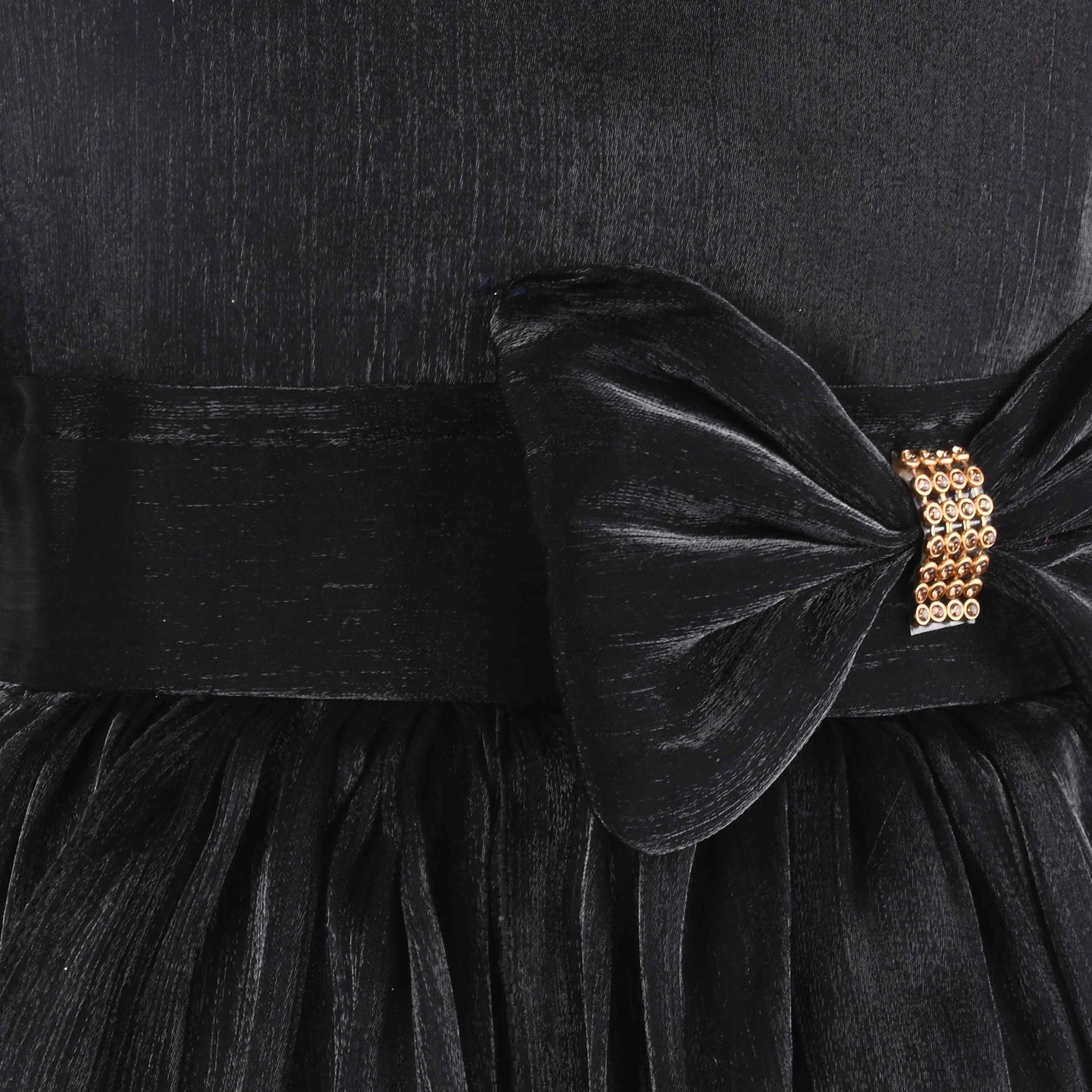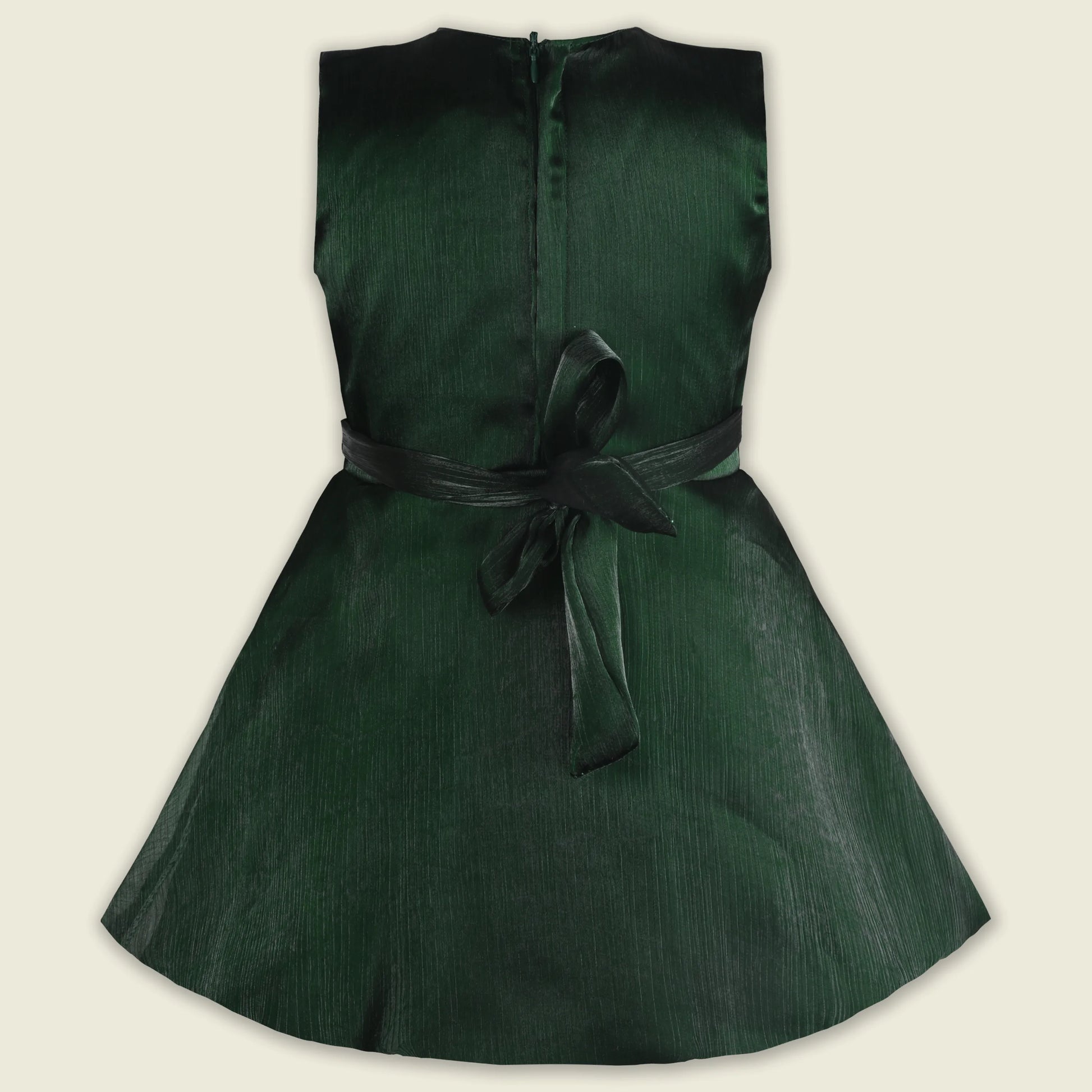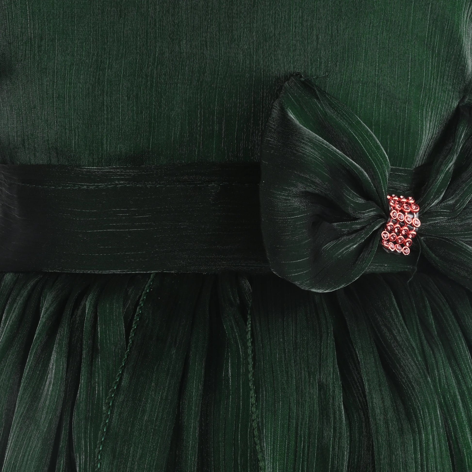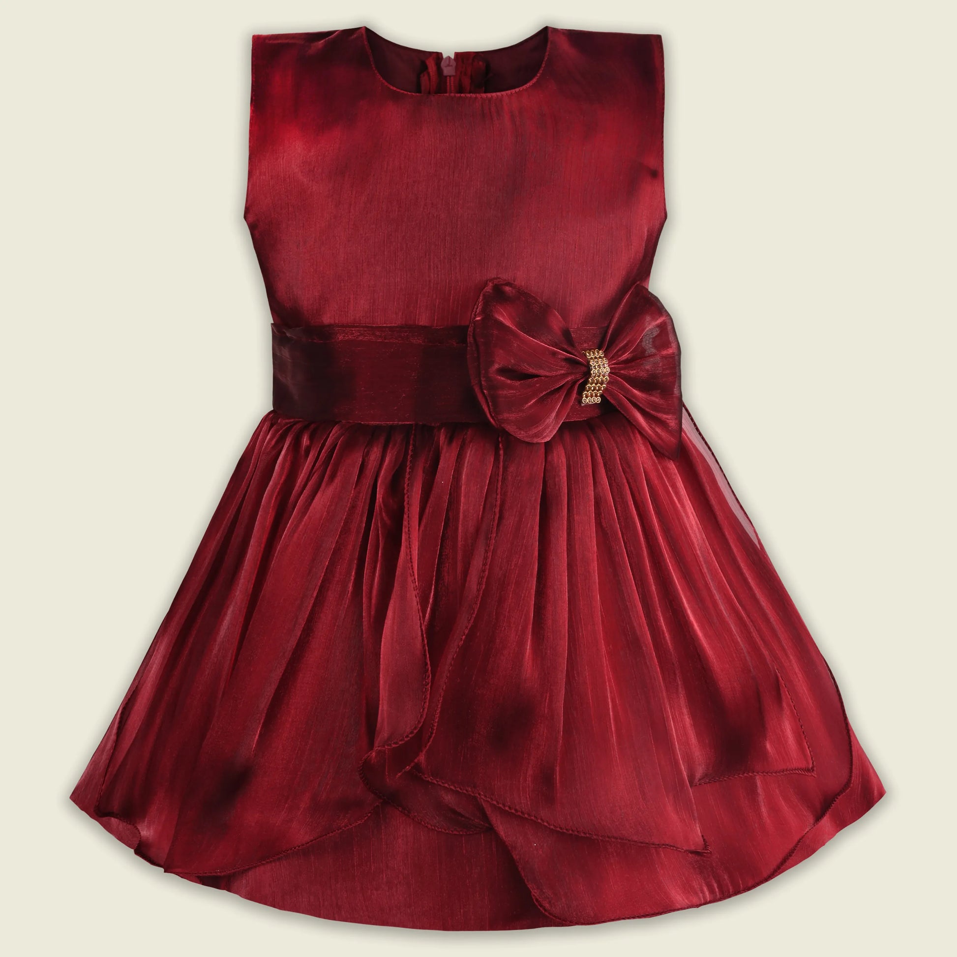 Girls Solid Pleated Satin Fit and Flare Frock Dress