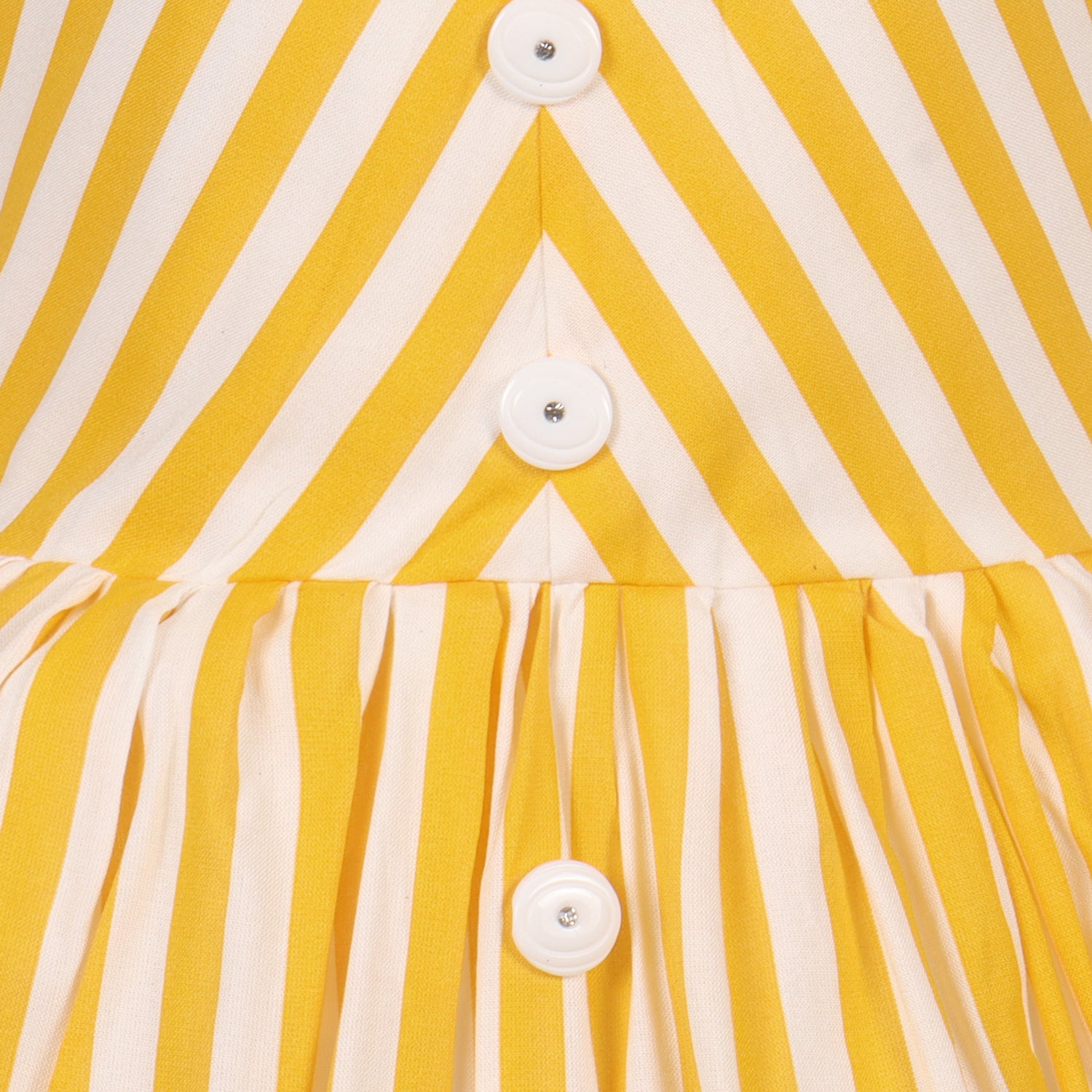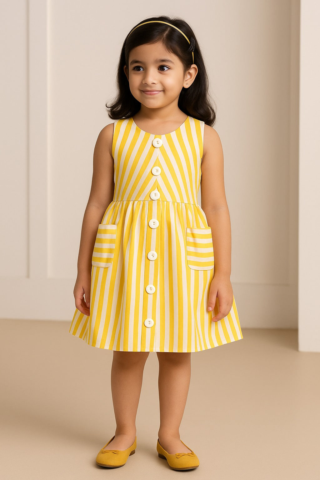 This Girls Striped A-line dress features a back tie and zipper closure for a secure fit. With its knee length and round neck design, this dress makes a comfortable and stylish addition to any girl's wardrobe. Perfect for any occasion, this dress combines fashion and practicality for a must-have piece.