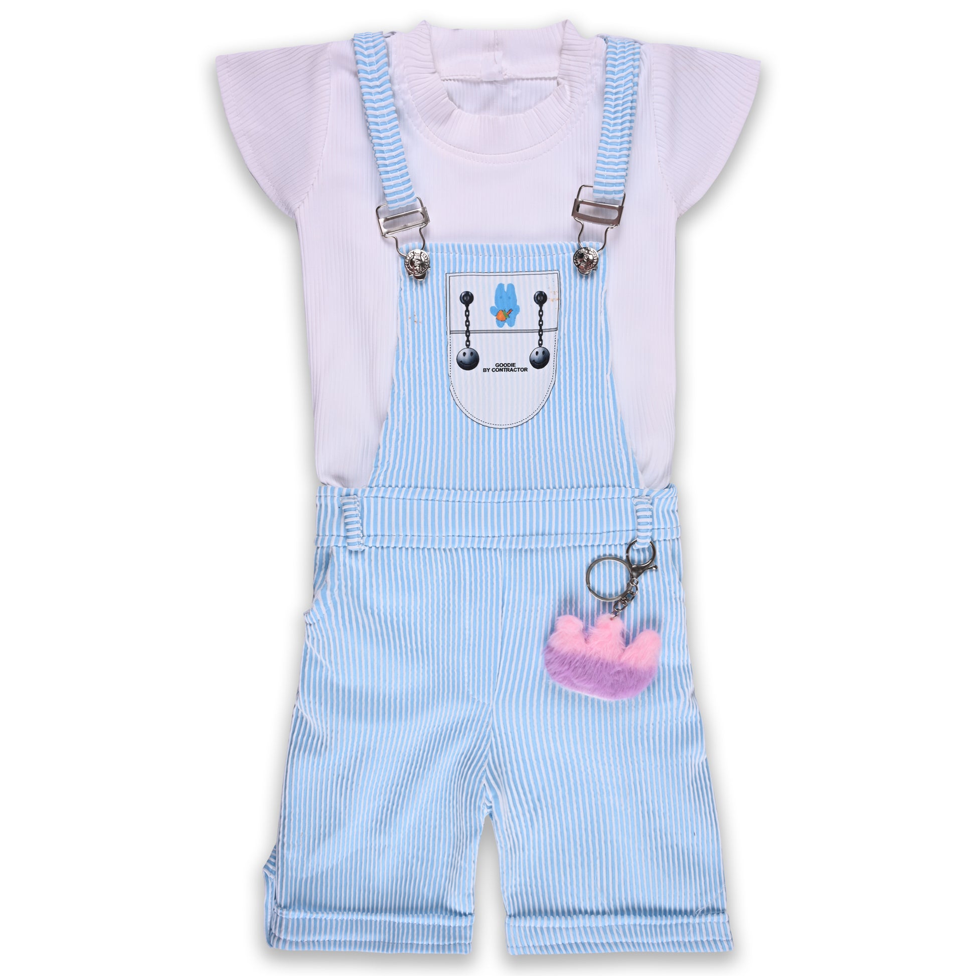 Girls Stylish Top and Striped Dungaree Set