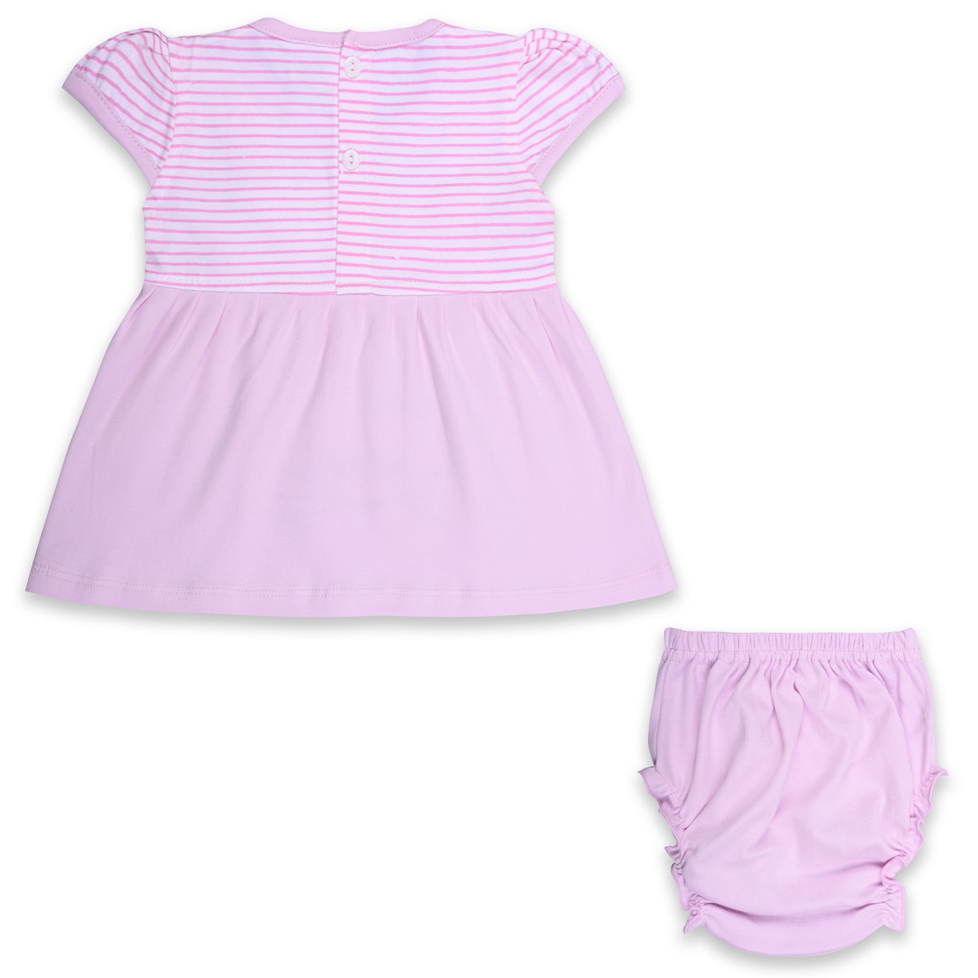Girls Stripes and Embroidered Cap Sleeve Frock Dress comes With brief.