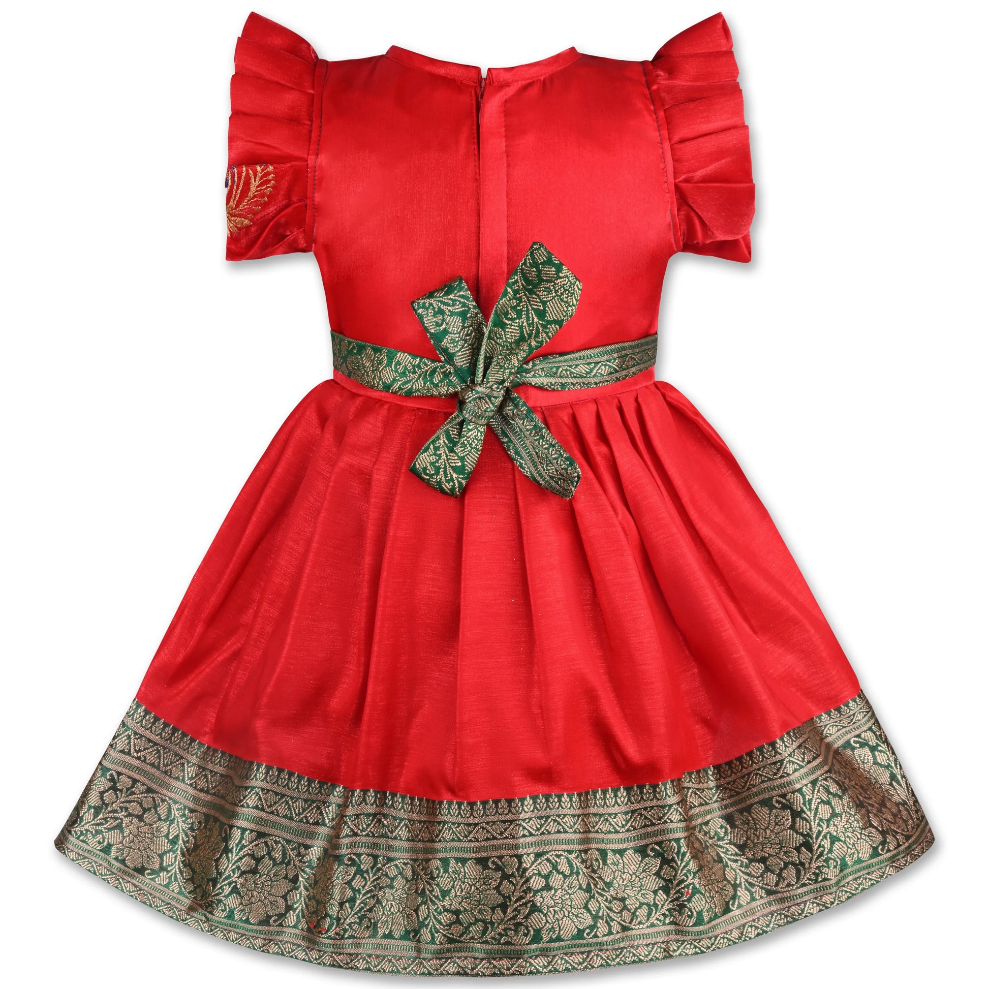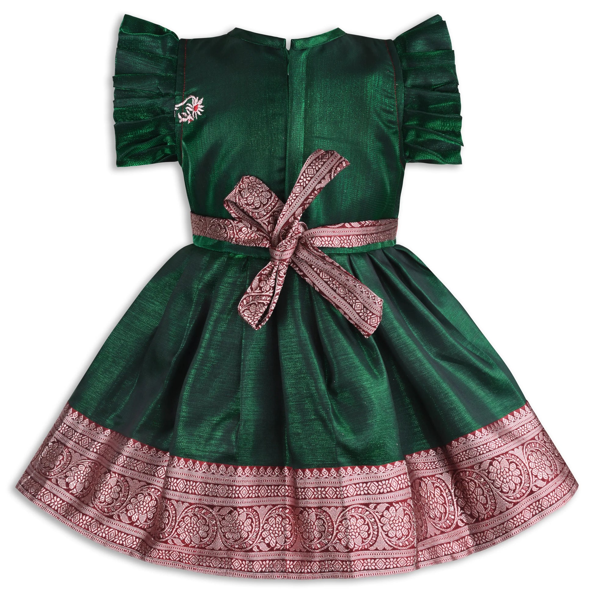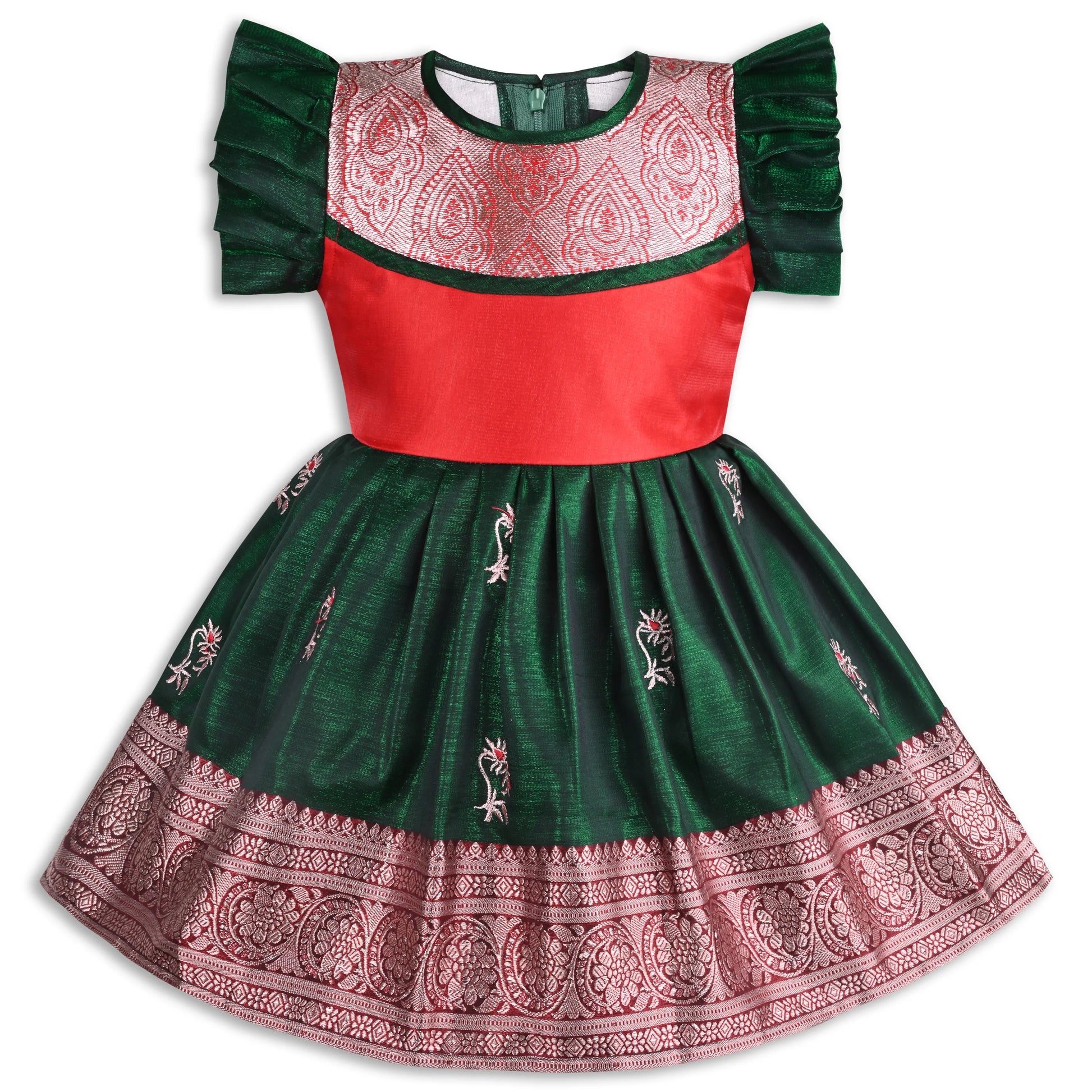 Girls Traditional Silk Party Frock – Banarasi Pattu Dress