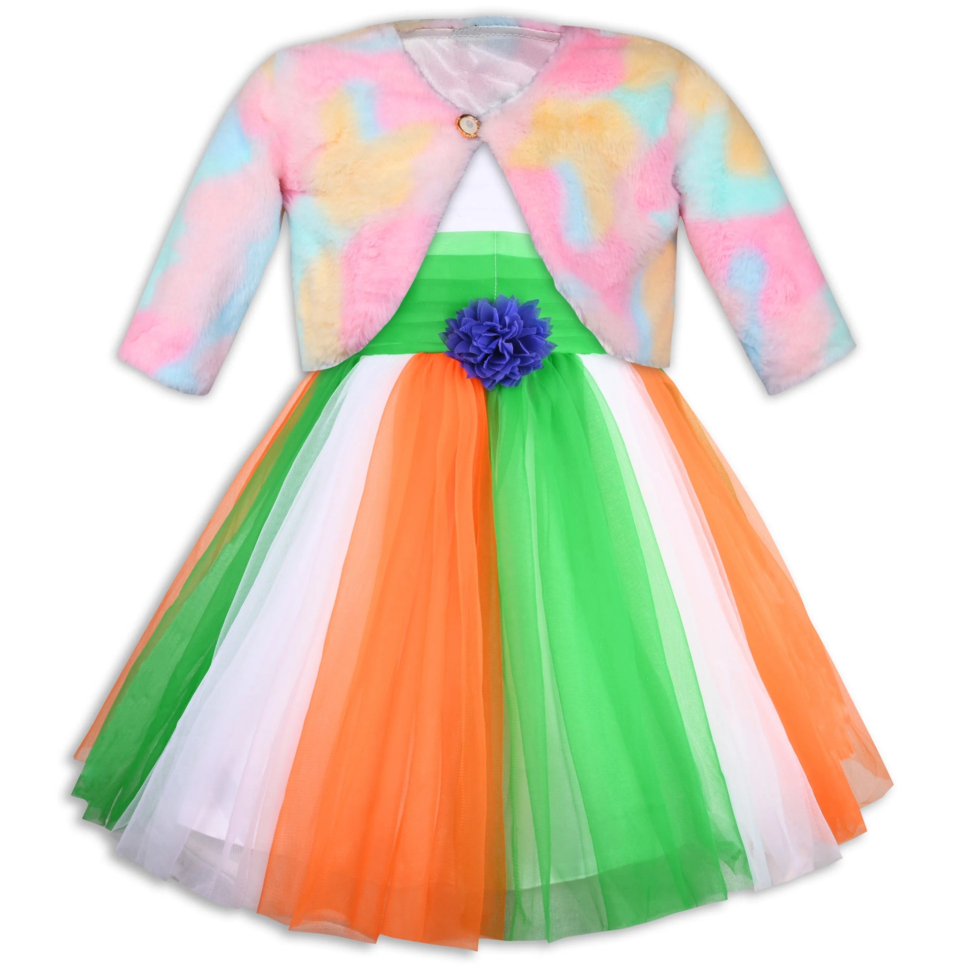 Dress your little patriot in this charming Girls Tri-colour Republic Day Flag Dress.