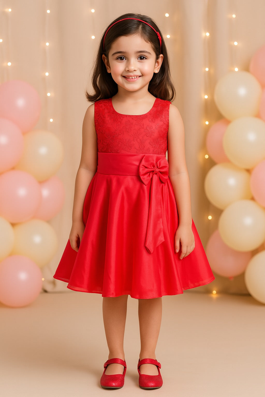 This Girls' jacket dress features a round neck, embroidered detail, and bow, adding a touch of elegance to the design. The back zip opening with tie-up ensures a secure and comfortable fit, making it perfect for any occasion. Dress your little one in style and sophistication with this must-have piece.