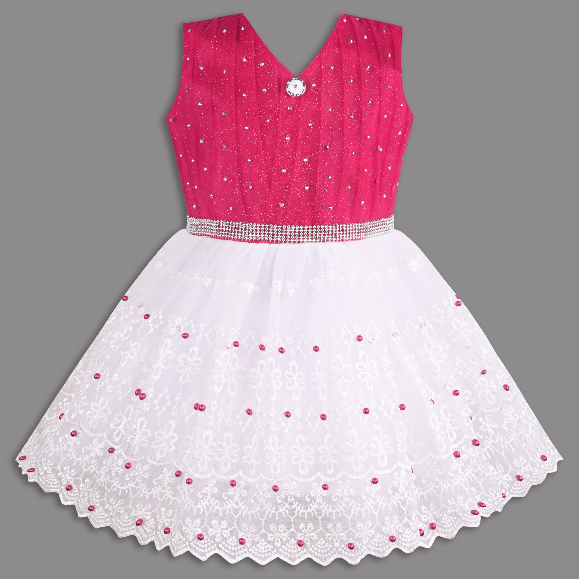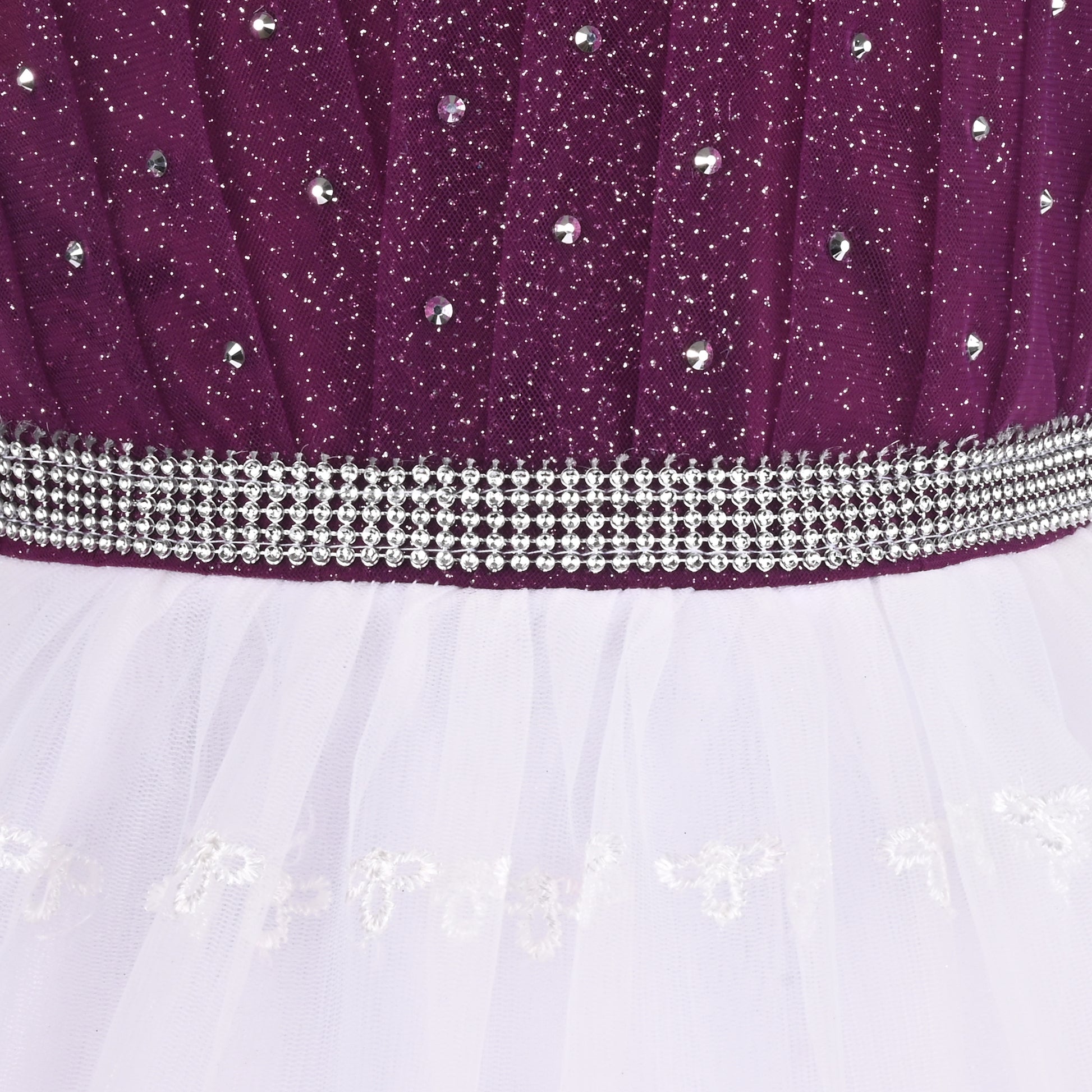 Stylish Net Party Dress for Girls – Sleeveless Design with Embellished Lace and Sparkle Details