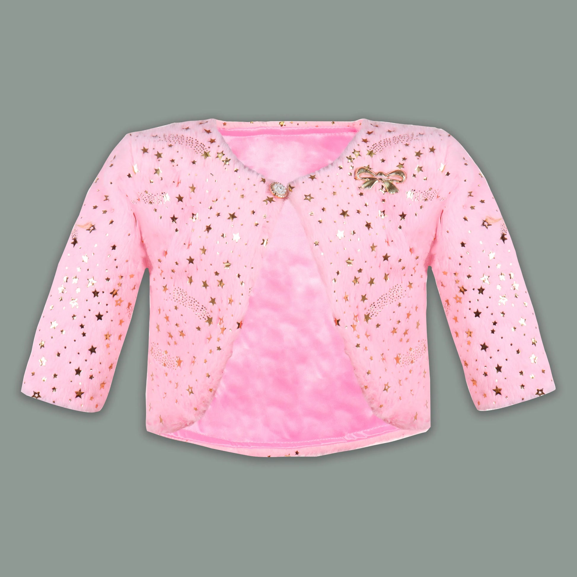 Made from soft, warm fur fabric, this shrug features beautiful golden star details and a cute bow accent, adding a magical sparkle to every outfit. It’s lightweight, cozy, and designed to pair perfectly with dresses, frocks, and festive gowns.