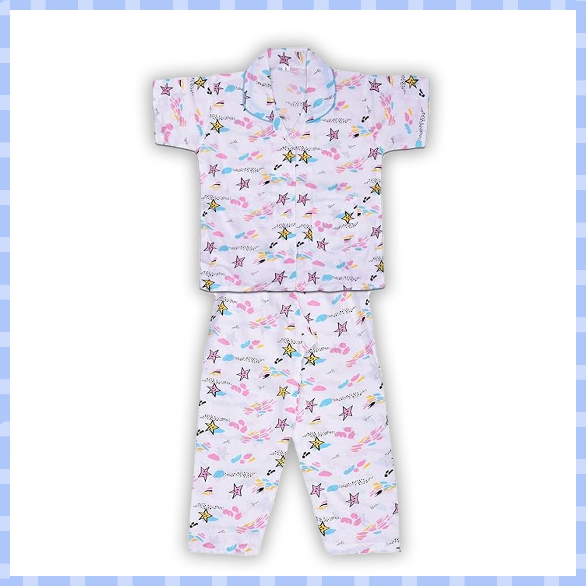 This Night Suit Dress for Boys and Girls offers a comfortable and relaxed fit, perfect for a good night's sleep. The shirt collar and short sleeves add an elegant touch while the elasticated pant ensures flexibility and ease of movement. Ideal for both boys and girls.