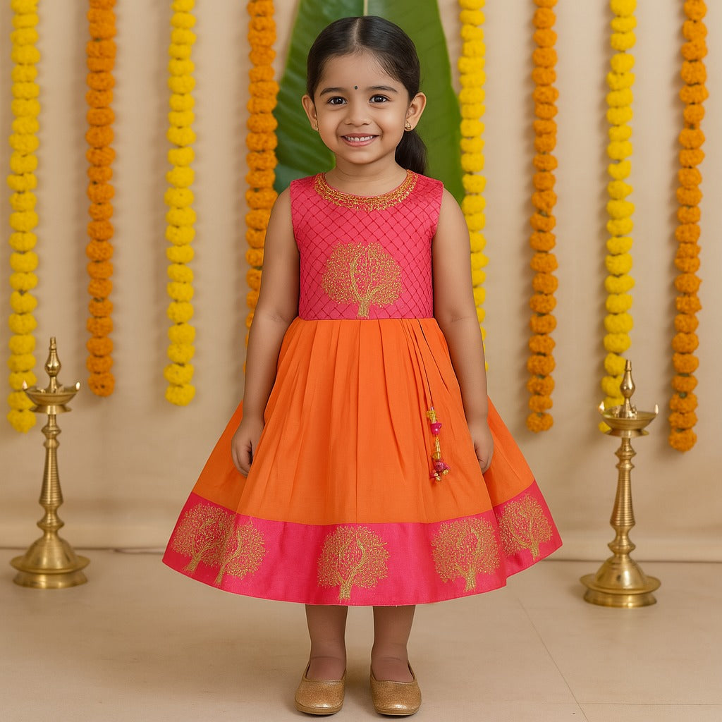 Baby Girls Silk Embroidered Ethnic Frock Dress