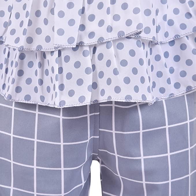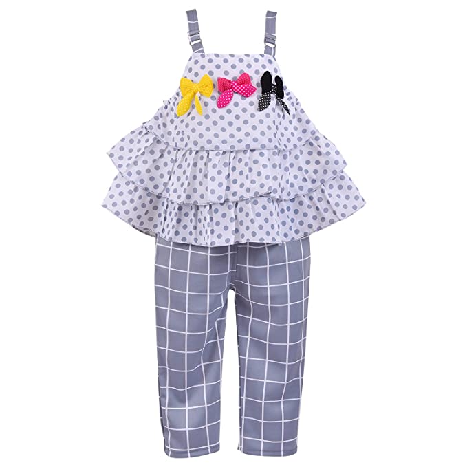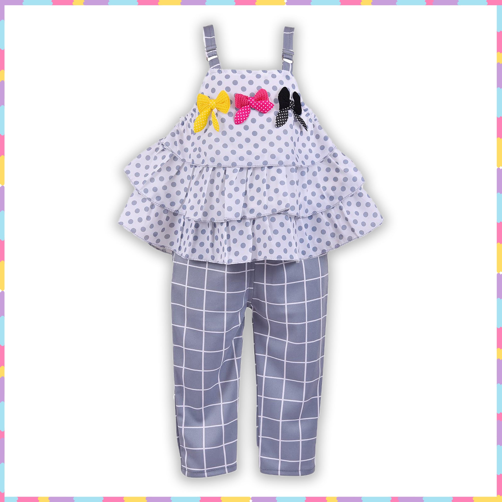 Girls Polka Dot Layered Top and Checkered Pants Set