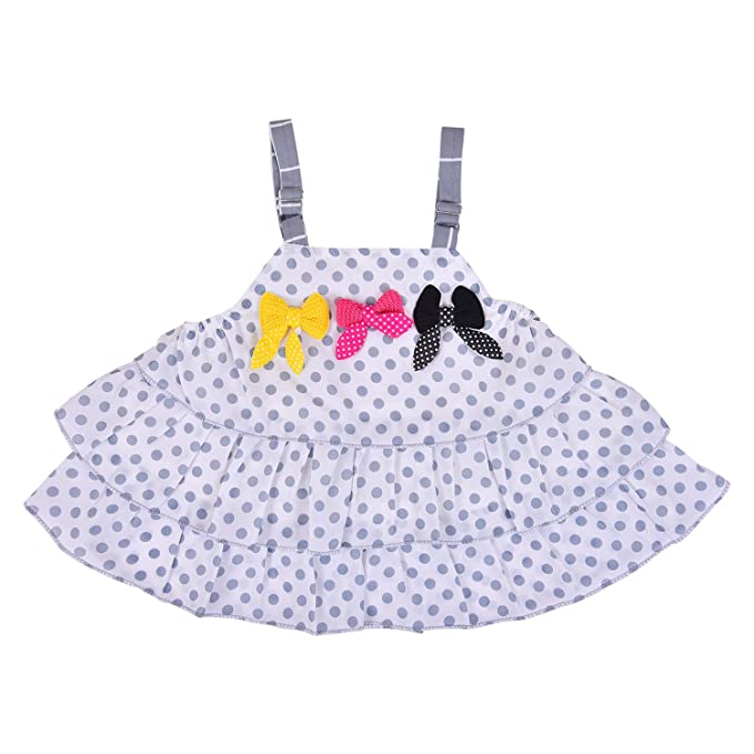 - Top Design: Polka dot printed layered top with bow detailing for a playful look