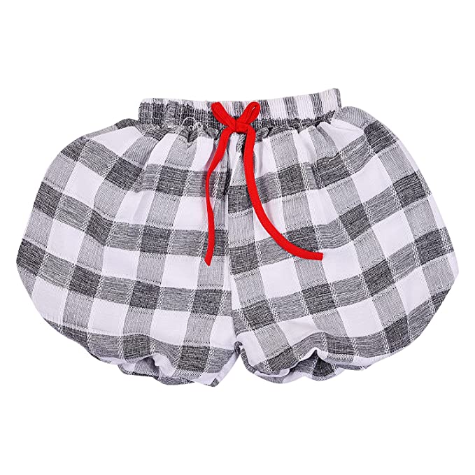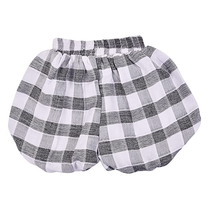- Bottom Design: Checkered bloomers with elastic waistband and leg openings for a snug yet comfy fit