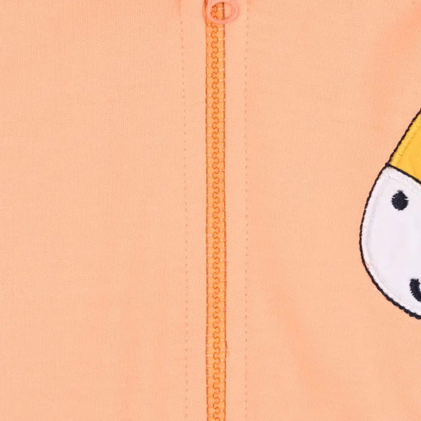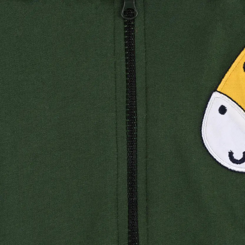 The highlight is the adorable giraffe applique with 3D ears, making it a favorite for kids. Designed with full sleeves, ribbed cuffs, and a front zip closure, it ensures both practicality and style. The sea blue color with bright accents gives it a fresh and trendy look, making it suitable for boys and girls alike.